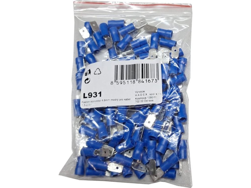 Faston-konektor 4,8mm modrý pro kabel 1,5-2,5mm2, balení 100ksDoplňkové parametry