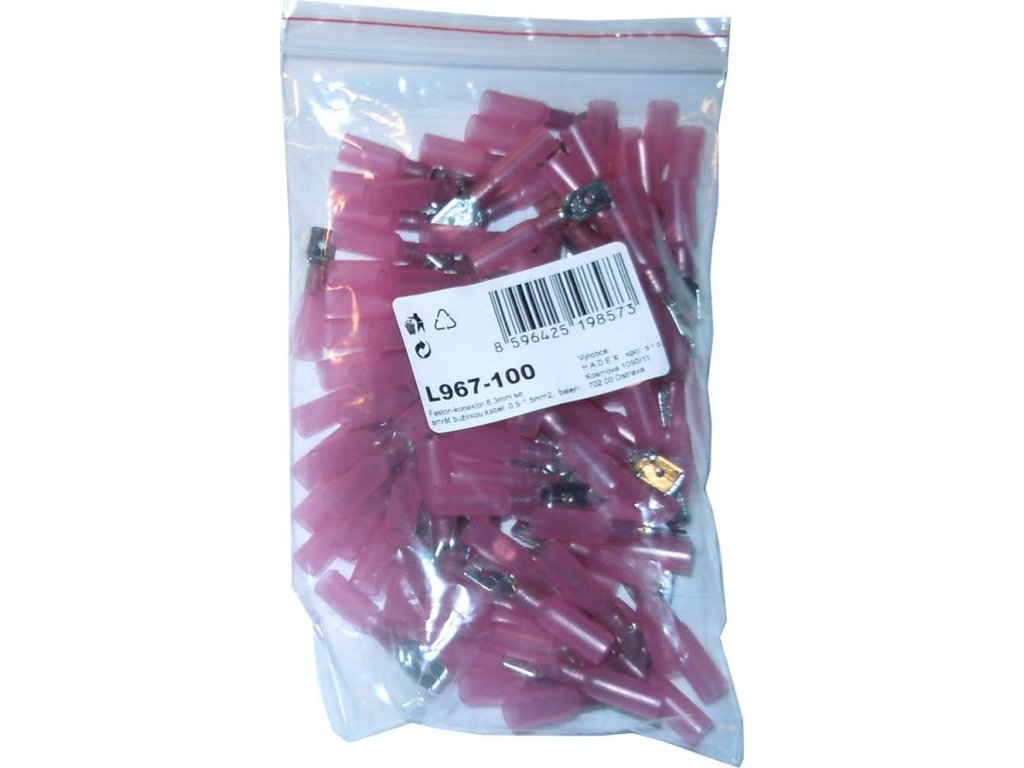 Faston-konektor 6,3mm se smršť.bužírkou,kabel 0,5-1,5mm2, balení 100ksDoplňkové parametry