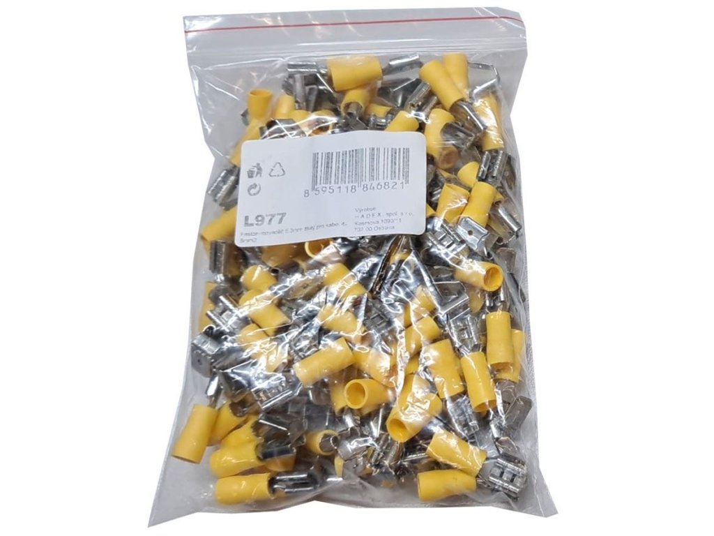 Faston-rozvaděč 6,3mm žlutý pro kabel 4-6mm2, balení 100ksDoplňkové parametry
