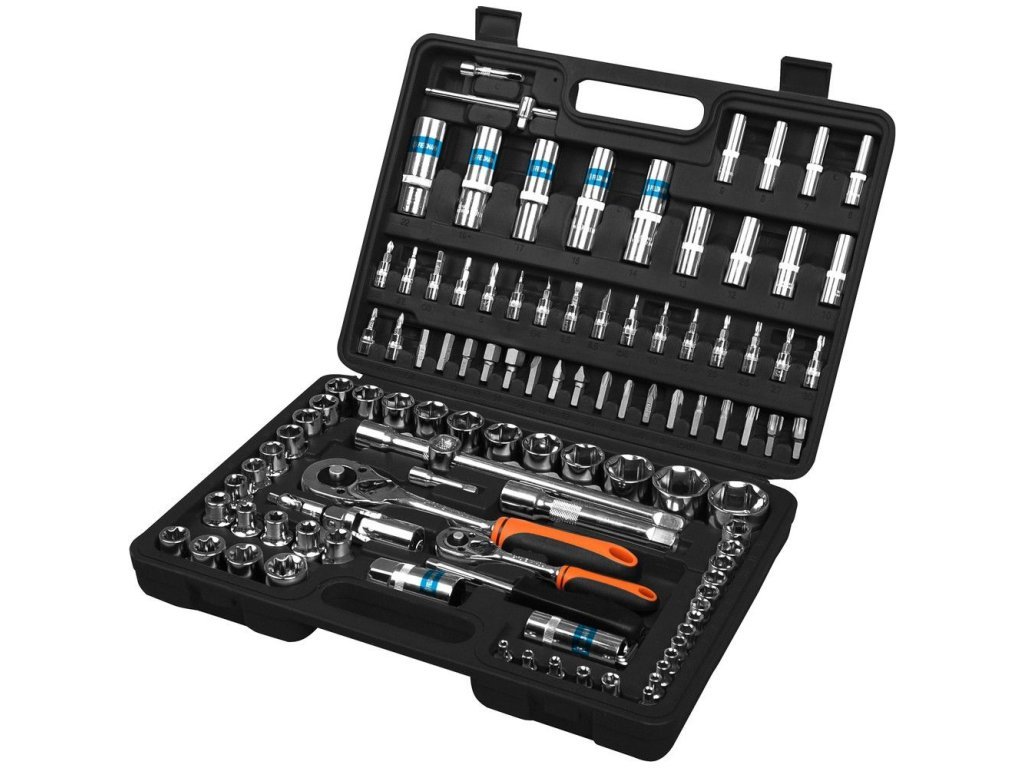 5x – 1/4“ hlavice nástrčná: E4,E5,E6,E7,E8; •2x – ¼“ prodloužení: 50mm a 75mm