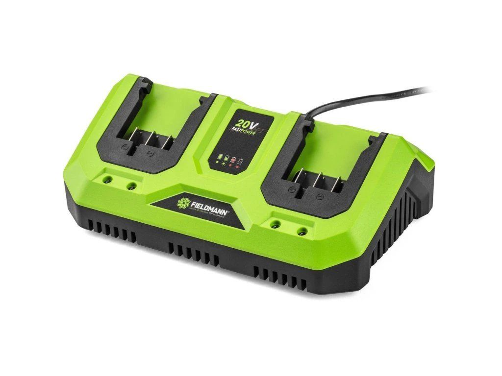 Li-Ion duální rychlonabíjecí stanice renomované značky FIELDMANN představuje opravdovou špičku ve své komoditě. Je kompatibilní se všemi stroji z aku řady FAST POWER 20V. Pro tento druh nabíječek je typický elektronický monitoring stavu nabití díky kterému ihned vidíte, zda nabíjení probíhá bez problému díky LED indikátoru. Největší výhodou této nabíječky je možnost nabíjení 2 baterií současně.