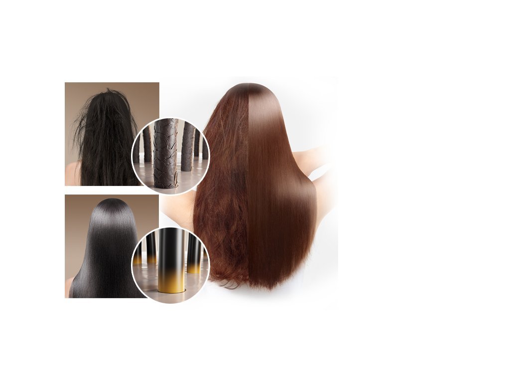 Šetrné vysoušení vlasů zabraňuje spálení vnějších kutikul vysokými teplotami. Celistvost vlasových šupinek má přímý vliv na výsledný vzhled vlasů. Dlouhodobé sušení při vysokých teplotách způsobuje poškození struktury a vypadávání vlasových šupinek, což vede ke ztrátě lesku a hladkosti. V suchém prostředí nebo při nadměrném vysoušení vzniká ve vlasech statická elektřina, která způsobuje krepatění.