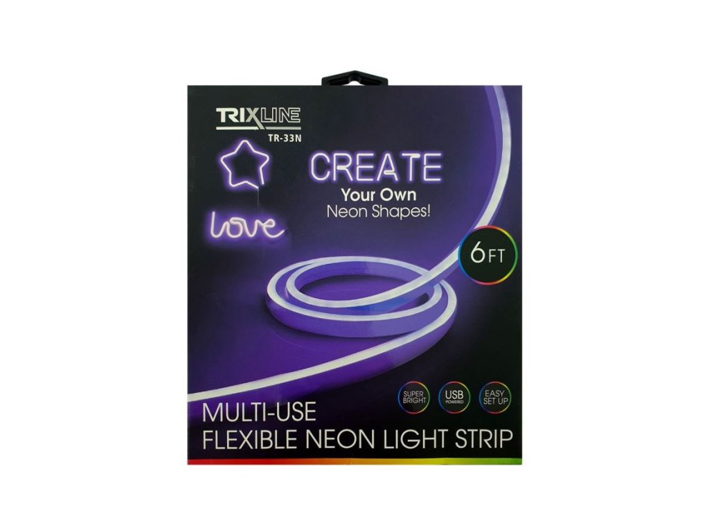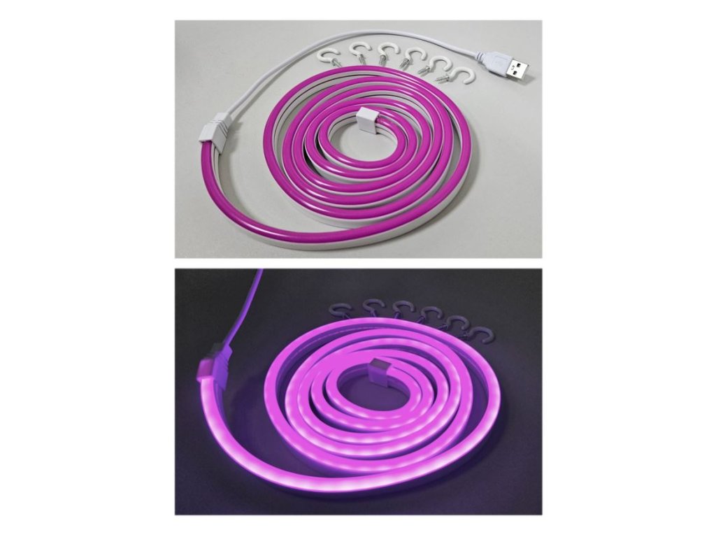 Flexibilní NEONOVÝ LED pásek - fialový, 1,8m, IP65, TRIXLINE Neonový modrý LED pásek TR-30N Trixline napájený přes integrované USB. Designový prvek, který vnese do prostoru moderní atmosféru. Ideální pro vytváření dekorací k slavnostním příležitostem jako jsouvečírky, narozeninové oslavy, plesy, Vánoce, svatby, Halloween, Silvestr. Výzdoba interiéru dětských pokojů, obýváků, restaurací, barů, hospod, klubů, heren apod. Pásek lze snadno ohnout do libovolného tvaru, obrazce, nápisu či reklamního textu a zastřihnout na požadovanou délku každých 2,5cm mezi černými drátky.Výhody: