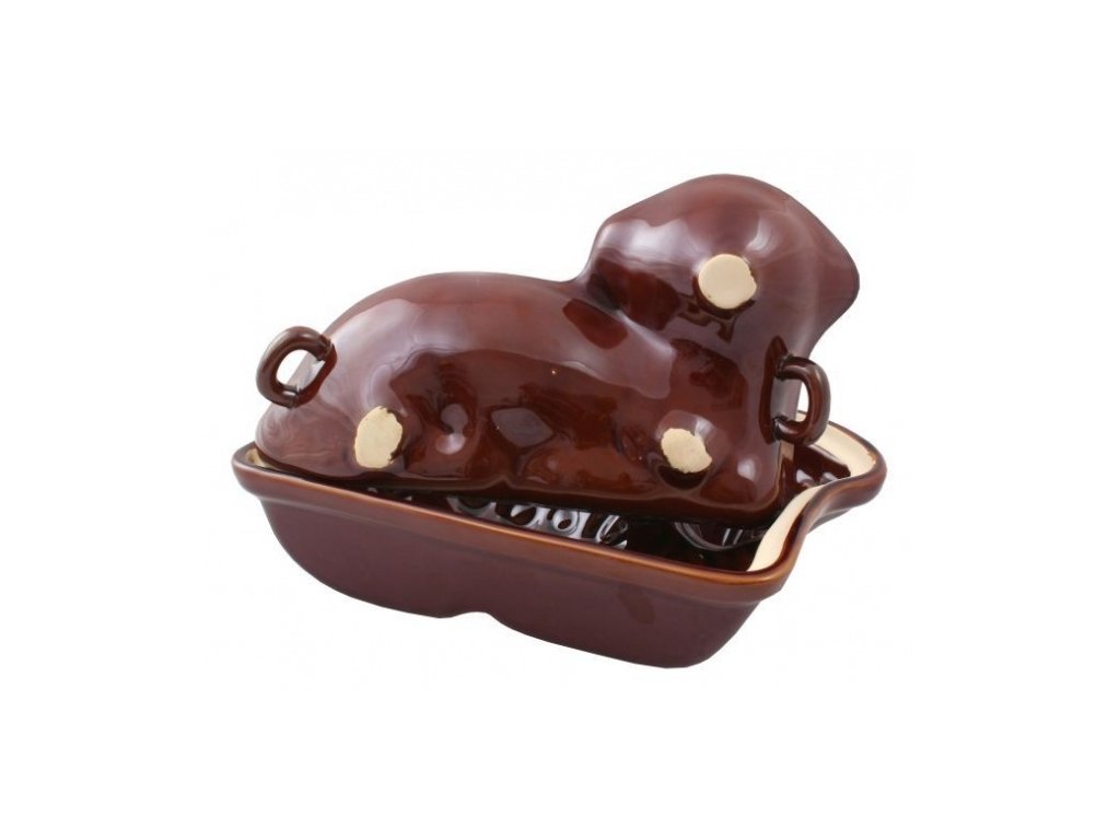 Dvoudílná forma beránek, materiál keramika s hnědou glazurou.Rozměry 31 x 20 x 12.5 cm.