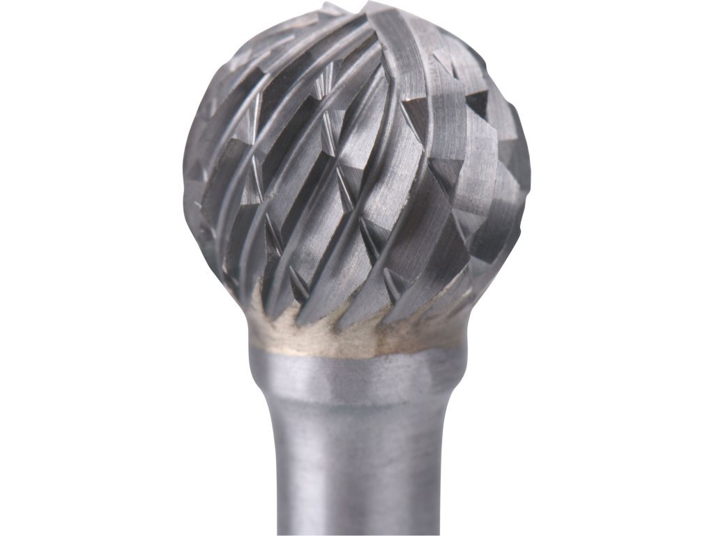 Stopková karbidová fréza s kulovým tvarem, navržená pro odhrotování, broušení a opracování kovových materiálů, jako jsou litina, ocelolitina, slitiny uhlíkové oceli a nerezová ocel, až do tvrdosti 65 HRC.