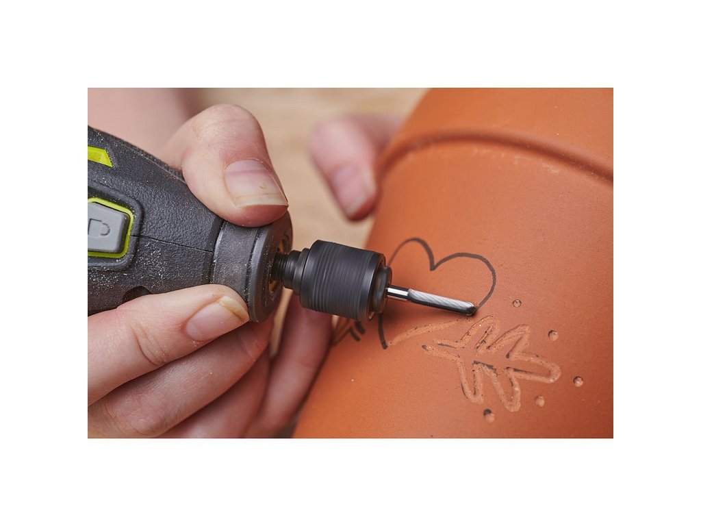 Kompatibilní s rotačními nástroji Ryobi a jakýmkoli jiným rotačním nástrojem s kapacitou kleštiny 3,2 mm / 1/8”.