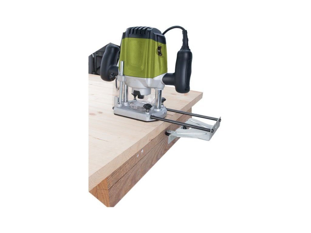 - bočním vodítkem s vodícím kolečkem lze frézovat souběžné oblé profily a díky hrotu lze vytvářet kruhové profily uvnitř plochy materiálu otáčením horní frézky kolem tohoto zabodnutého hrotu