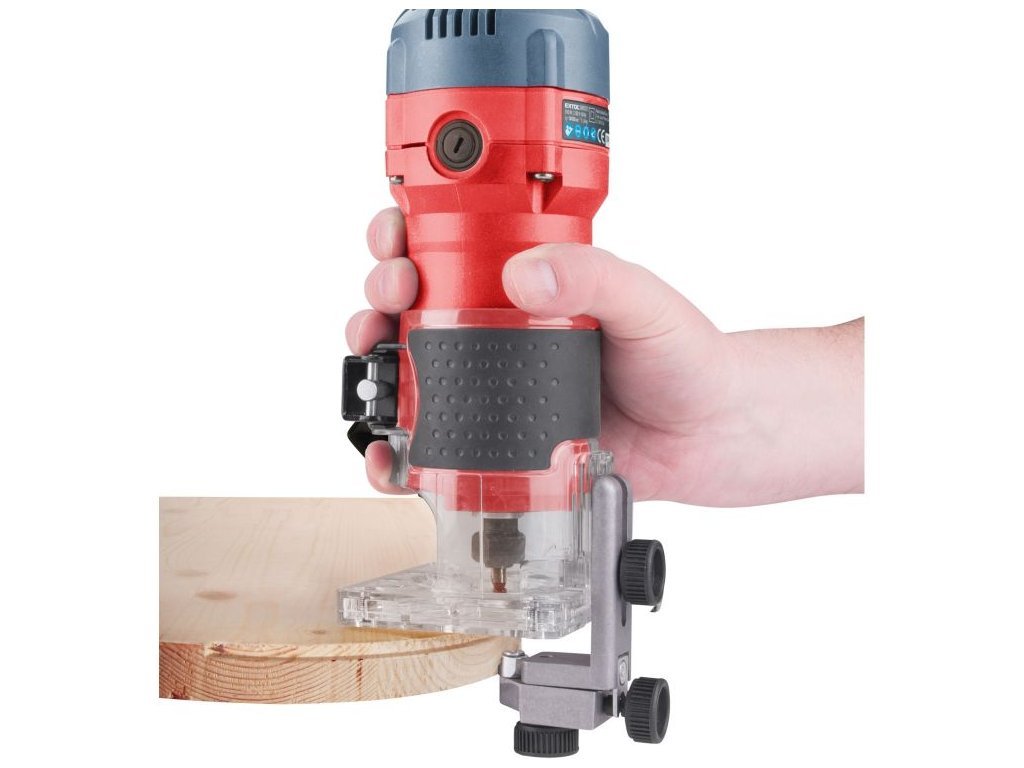Ohraňovací frézka se vyznačuje jednoduchostí a spolehlivostí. Tato jednoruční minifrézka je určena k frézováni otvorů, hran a profilů do dřeva s různými tvary v závislosti na tvaru použité tvarové frézy. Malé rozměry a nízká hmotnost umožňují vedení frézky jednou rukou a snadnou manipulaci při práci. Vysoké otáčky zajistí dokonale hladký opracovaný povrch. K frézce jsou přibaleny tři různé vodítka pro vedení frézky při práci. Válečkové vodítko pro frézování oblých hran. Podélné vodítko pro frézování podél rovných hran a kružnic. Kopírovací vložka pro frézování dle přiloženého vzoru. Stojan frézky umožňuje nastavit hloubku frézování.