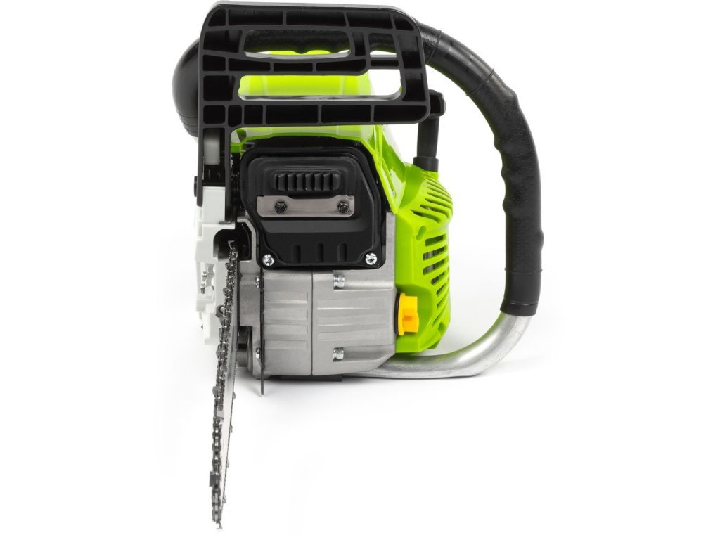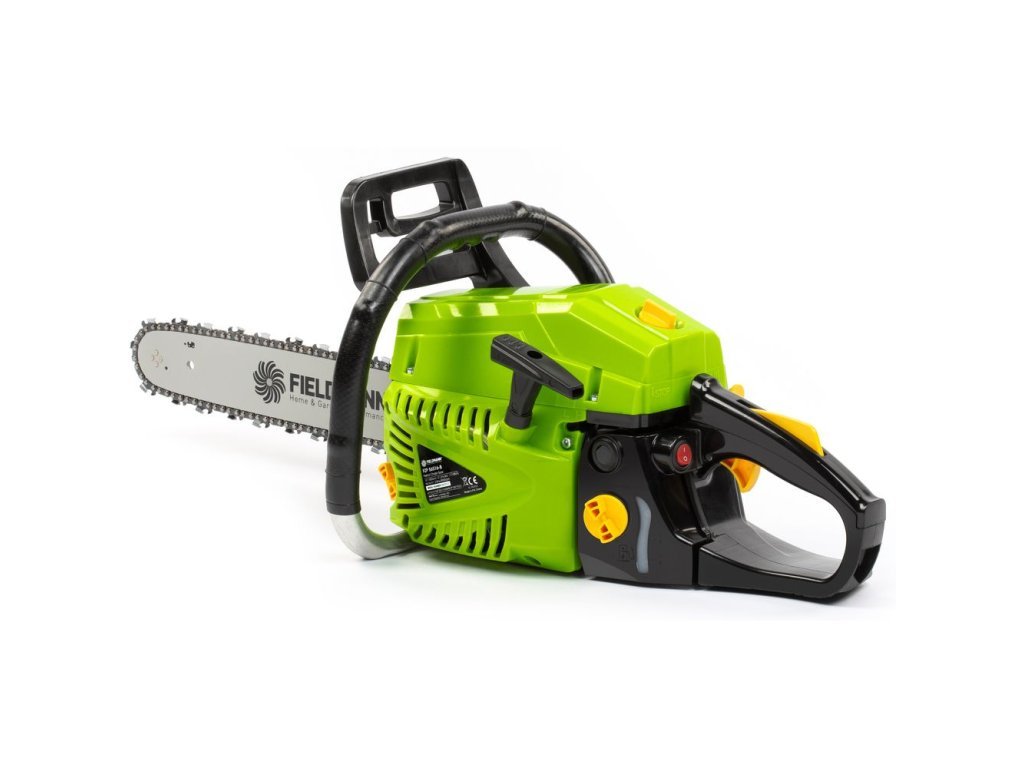 Benzínová pila Fieldmann splní jakoukoliv výzvu při prořezávání větví, kácení menších stromů, řezání palivového dřeva a obecně při údržbě zahrady a okolí domu. Výborně vyvážený, nepříliš těžký, a přitom výkonný stroj je vybaven motorem o obsahu 56.5 cm3. Tento dvoutaktní jednoválec pak nabídne dostatečný výkon 2.5 kW. Samozřejmostí je také snadná údržba. Kvalitní řetěz Fieldmann je mazán automatickou olejovou pumpou, což snižuje tření a zvyšuje životnost řetězu, sílu mazání lze pohodlně nastavit pouhým šroubovákem. Kromě nezbytného nářadí pro manipulaci s lištou a řetězem, je součástí balení také kalibrovaná nádoba pro přípravu palivové směsi v odpovídajícím poměru.