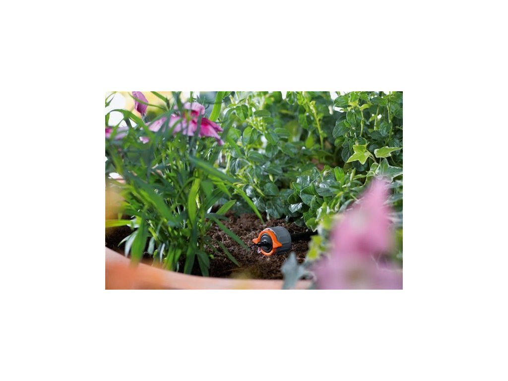 Regulovatelný, tlak vyrovnávající koncový kapač jako součást systému GARDENA Micro-Drip je ideální pro lokální zavlažování samostatně stojících rostlin nebo delších řádků rostlin s různými požadavky na zavlažování. Pomocí objemové stupnice na kapací hlavě lze nastavit množství vody. Tímto způsobem lze zajistit dávkování od 1 do 8 litrů za hodinu. Koncový kapač umožňuje vyrovnávání tlaku (1 až 4 bary) a zajišťuje tak rovnoměrnou distribuci vody - nezávisle na vodním tlaku. Díky samočisticí membránové labyrintové technologii je zaručen dlouhodobý a spolehlivý provoz. Pro zavlažování samostatně stojících rostlin, je koncový kapač nakroucen na konec přívodního potrubí (3/16"). S montážním nástrojem (kat. č. 8322-20) lze provrtat propojovací potrubí 13 mm (1/2") a koncový kapač na něj nainstalovat přímo. Součástí je pět koncových kapačů.