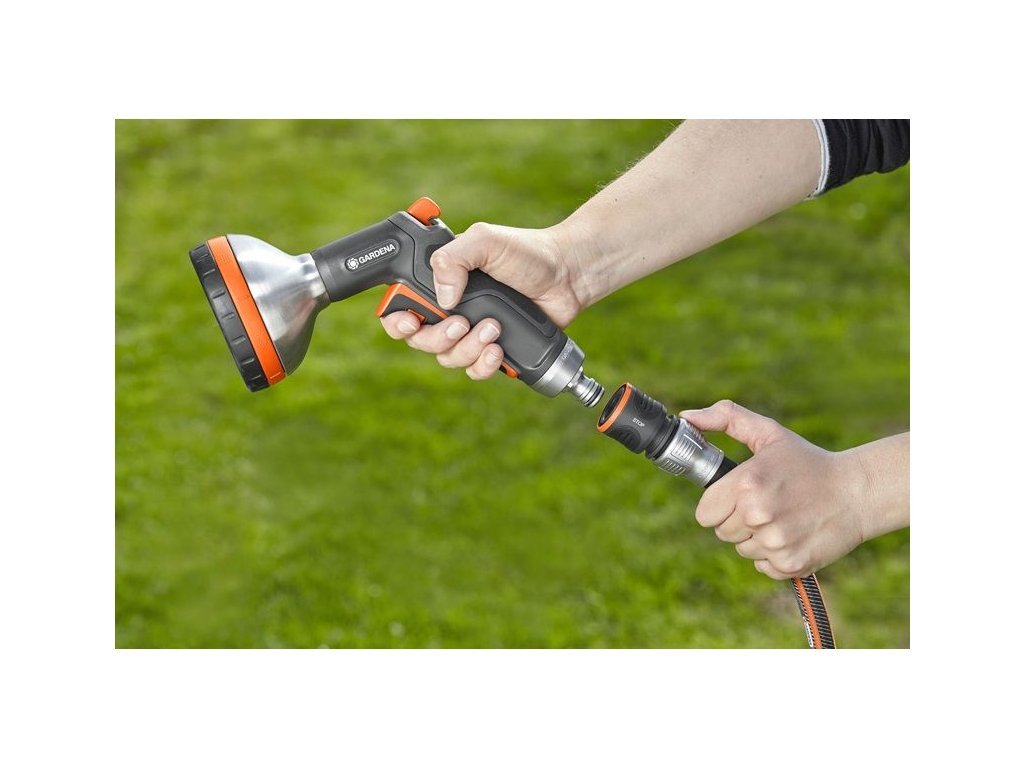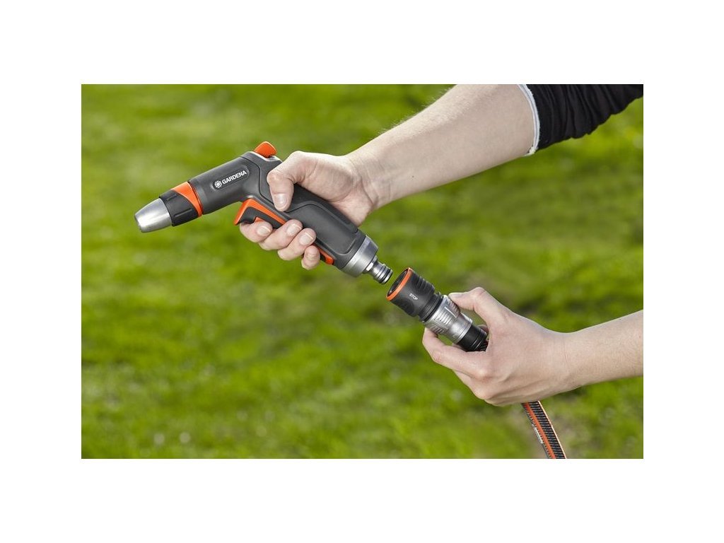 GARDENA stopspojka Premium ve vysoce kvalitním kovovo-plastovém provedení umožňuje rychlé a pohodlné spojení a výměnu postřikovacího přístroje na konci hadice.