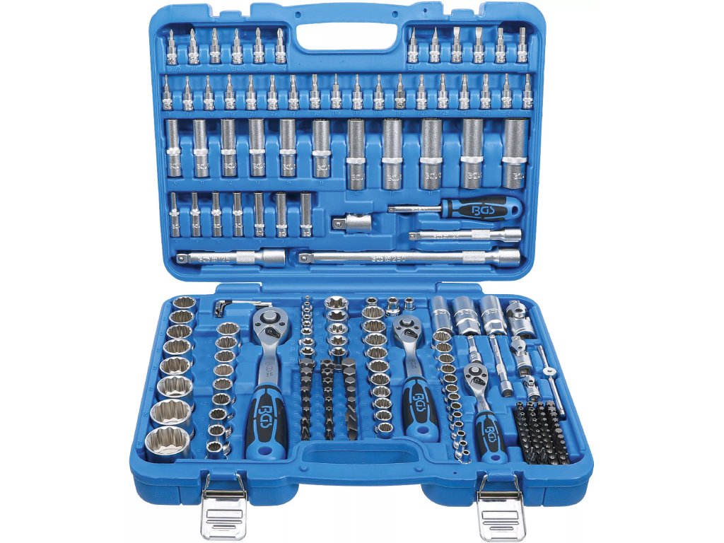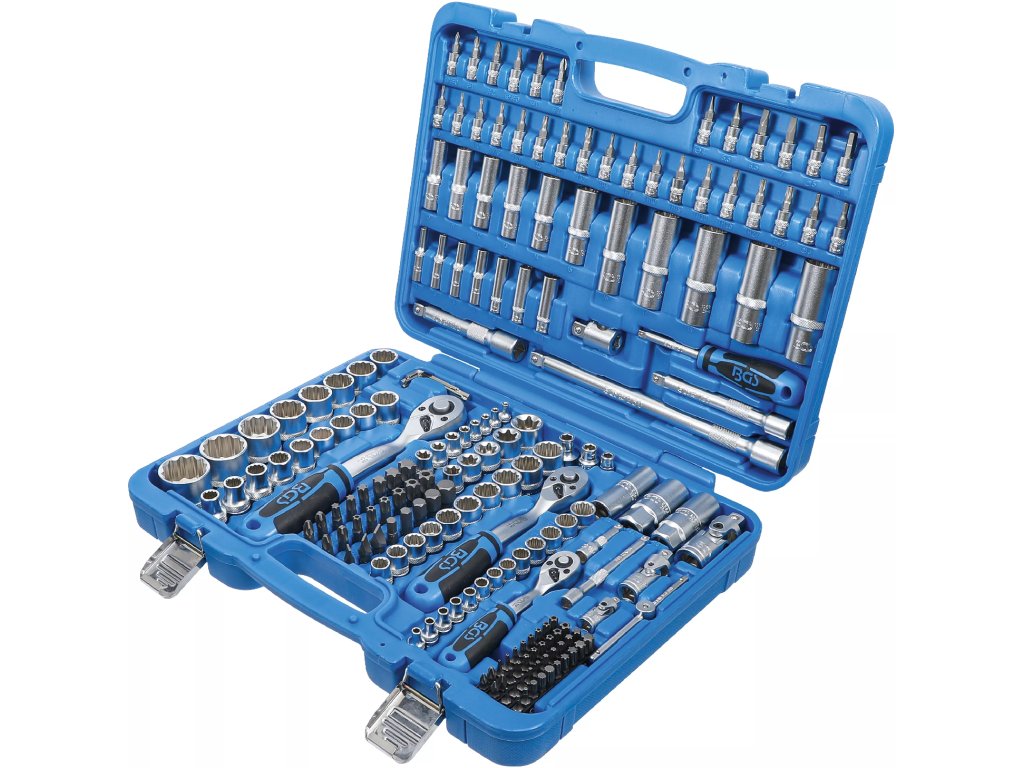 Kvalitní gola sada 1/4", 3/8", 1/2" obsahuje ráčny, dvanáctihranné nástrčné klíče, bity a další.