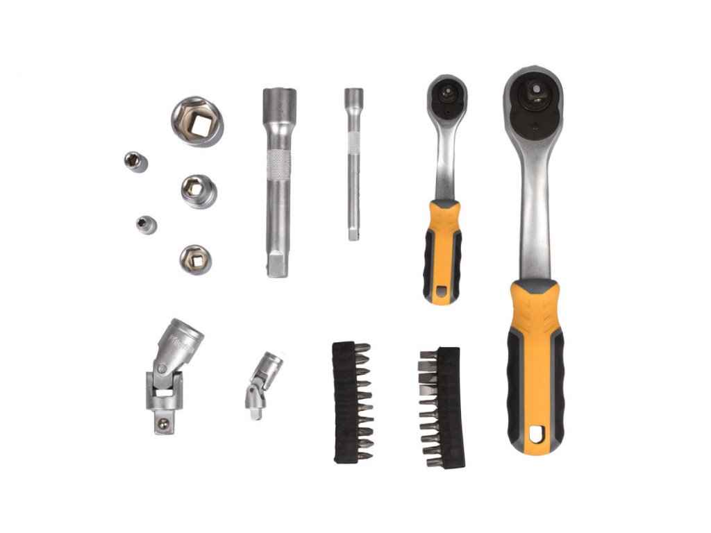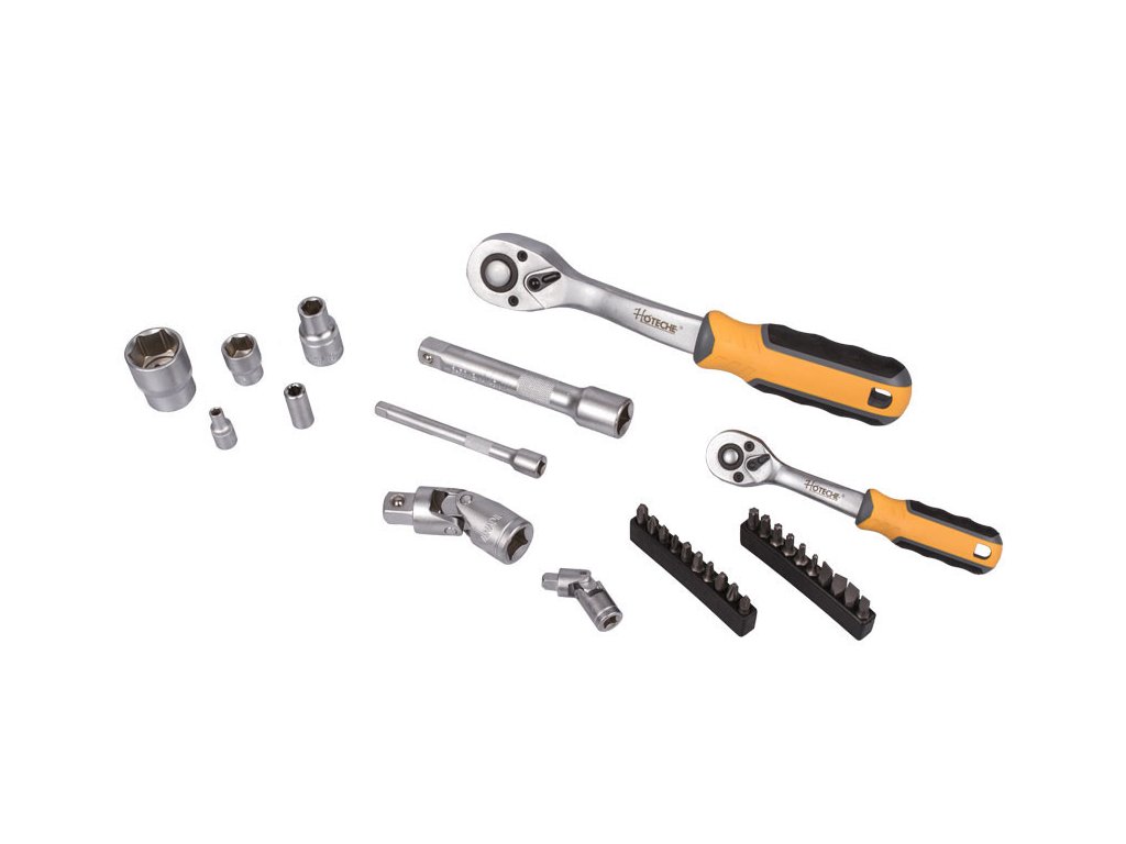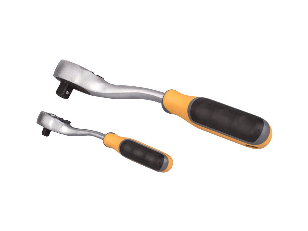 Gola sada s ráčnou 1/2" a 1/4" v praktickém plastovém držáku, díky kterému sadu snadno přenesete nebo zavěsíte v garáži, dílně, apod. Díky ergonomickému tvaru rukojeti padnou ráčny dobře do ruky a docílíte tak pevnějšího úchopu. Rukojeť je navíc vyrobena z protiskluzových materiálů (kombinace plastu a gumy).