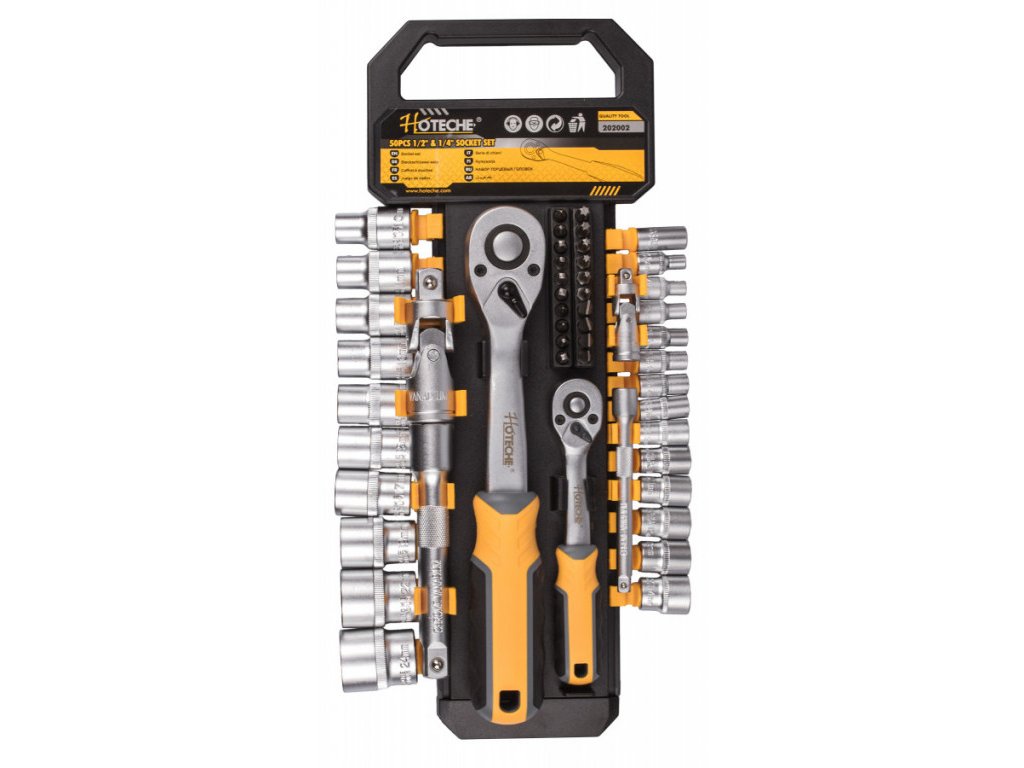 Gola sada 1/2" a 1/4" s nástrčnými klíči a bity, 50 dílů - HT202002