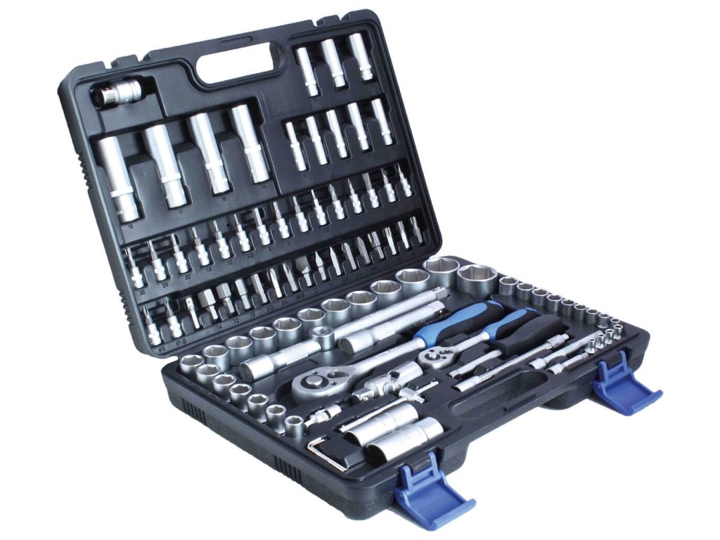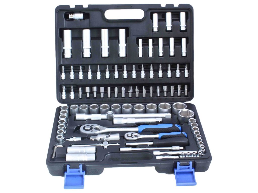 Gola sada s nářadím v metrických rozměrech, 94 dílů v plastovém kufru – SATRA S-SS941214