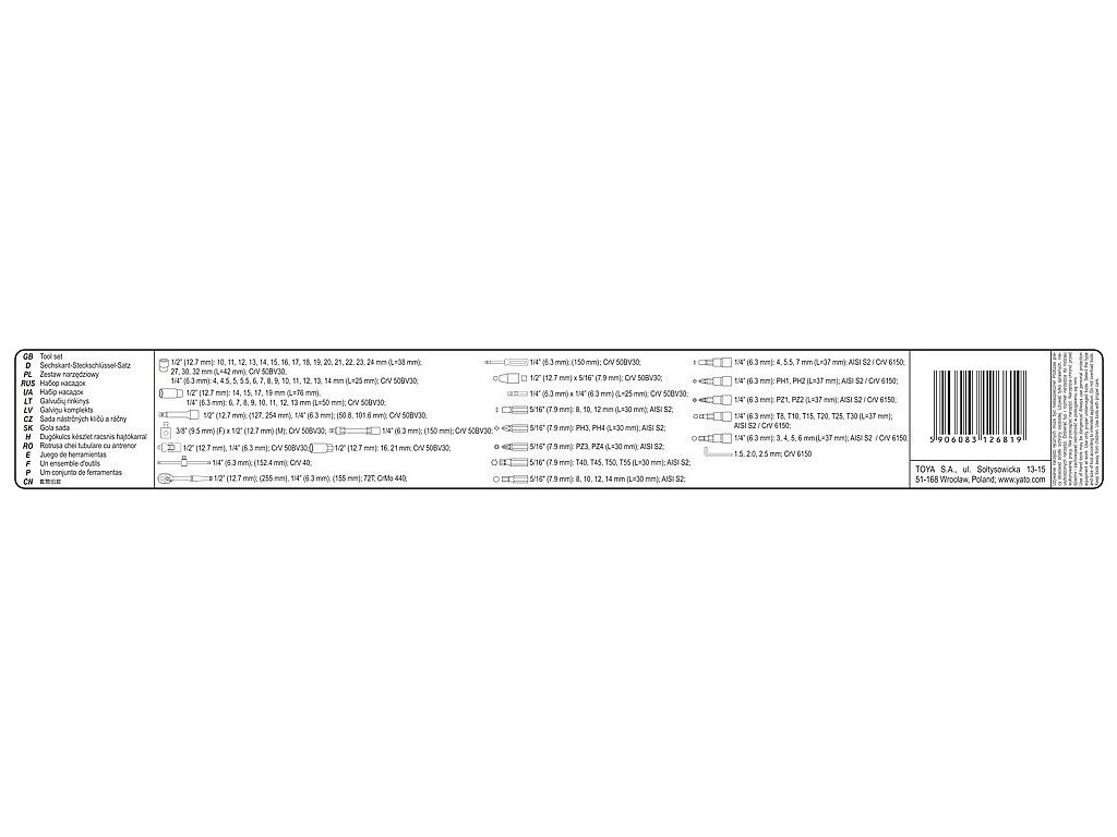 Gola sada 1/4" a 1/2", 94 ks - YT-12681