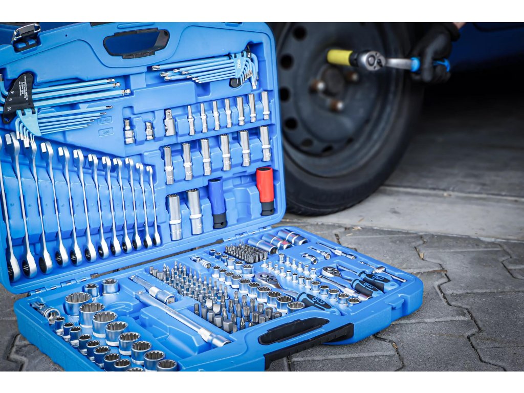 Velice obsáhlá a všestranně poskládaná „golovka“ s mnoha druhy nářadí. Hlavice, tzv. „ořechy“, jsou doplněny očkovými klíči a dalším vybavením. Souprava je ideální pro autoservis, dílnu, průmyslový provoz, ale i náročného domácího kutila.
