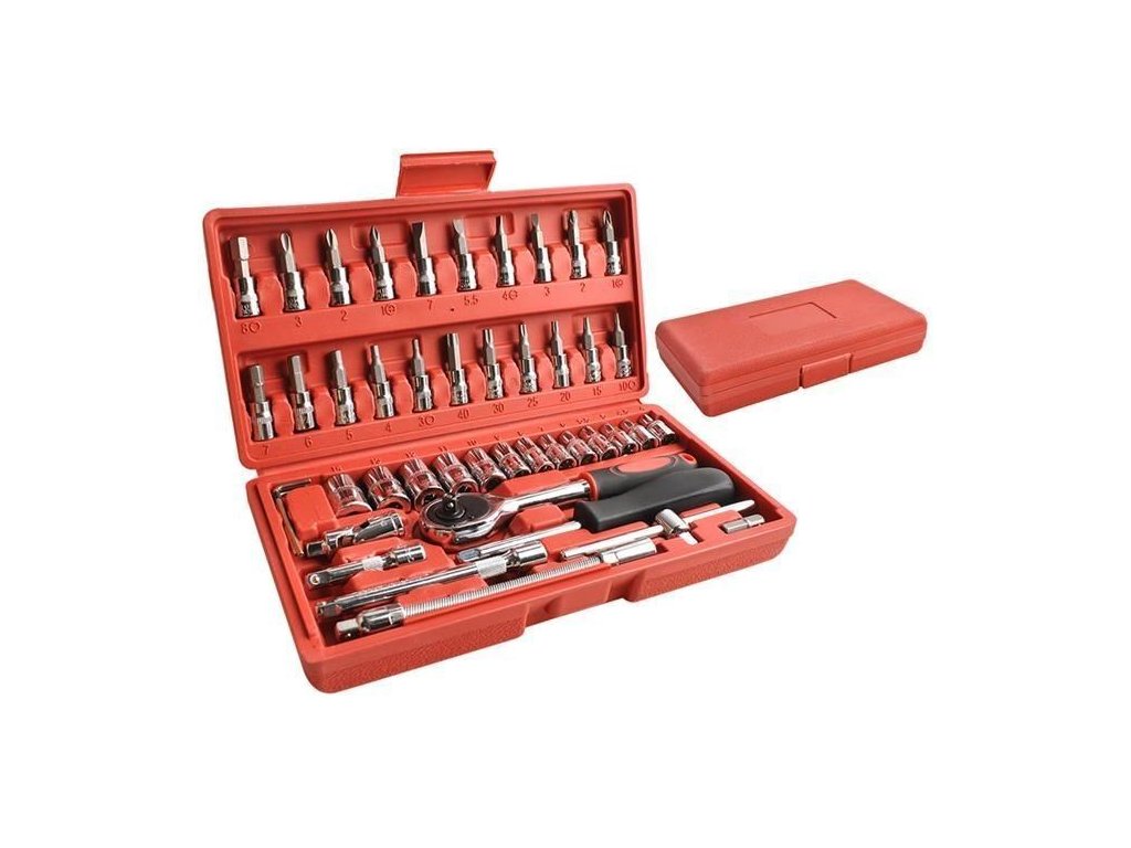 Gola sada 1/4 - 46 dílů Gola sada 1/4” nástrčných hlavic 4-14 mm, T-profil bez vrtání, inbus, plochý bit, PH a PZ. Celá sada v kombinaci chrom vanadia a matného chromu. V plastové kazetě.Gola sada 1/4”, 46 dílů - Obsahuje