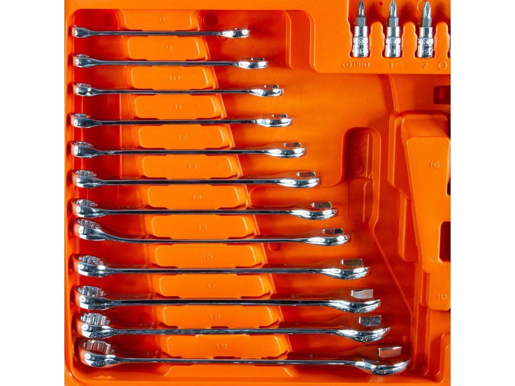 - očkoploché klíče: 8 / 9 / 10 / 11 / 12 / 13 / 14 / 15 / 16 / 17 / 18 / 19 mm