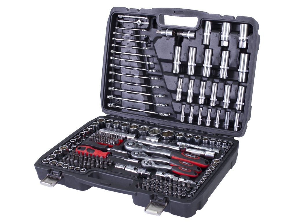 Sada nářadí v kufru s golou je vhodná do každé dílny. Gola sada obsahuje všechny tři běžně potřebné ráčny, tedy ¼", 3/8" a ½" a k nim odpovídající příslušenství v podobě klasických nástrčných klíčů, navíc prodloužených ořechů, nástrčné klíče na svíčky, hlavice s bity, očkoploché klíče apod. (viz podrobný popis).