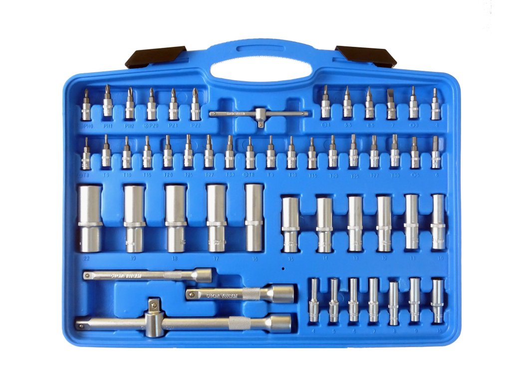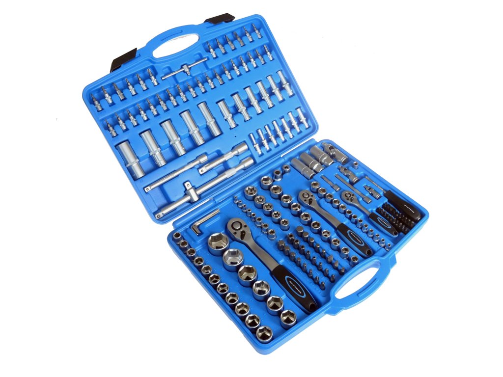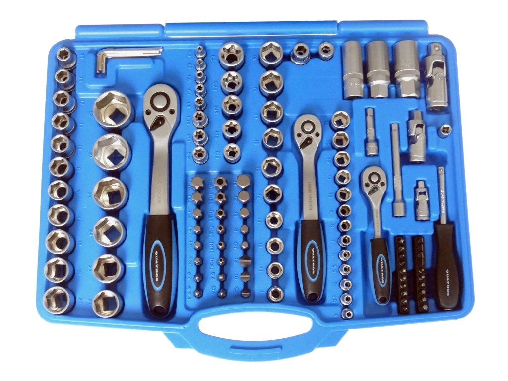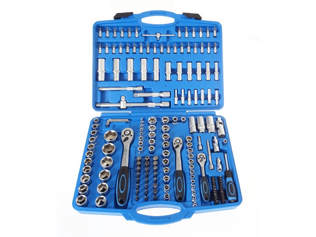 Gola sada s nářadím v metrických rozměrech, vodicí 4hrany 1/4" (6,35 mm), 3/8" (9,53 mm), 1/2" (12,7 mm), 171 dílů v plastovém kufru – QUATROS QS50171
