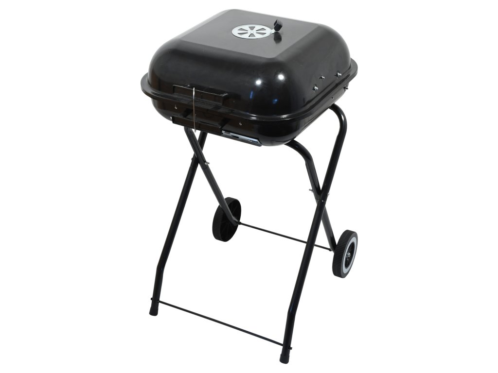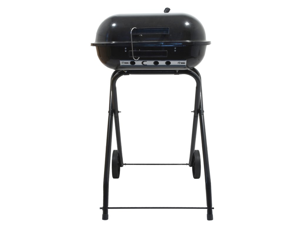 Konstrukce je vyrobena z kvalitního ocelového plechu se smaltovanou povrchovou úpravou. Madla jsou z odolného plastu a mají dostatečný prostor pro úchop. Mobilitu zajištují čtyři kovové nohy, doplněné o zpevňující rám ve spodní časti. Navíc je gril vybaven kolečky z plastu, která zaručují dostatečnou pohyblivost.