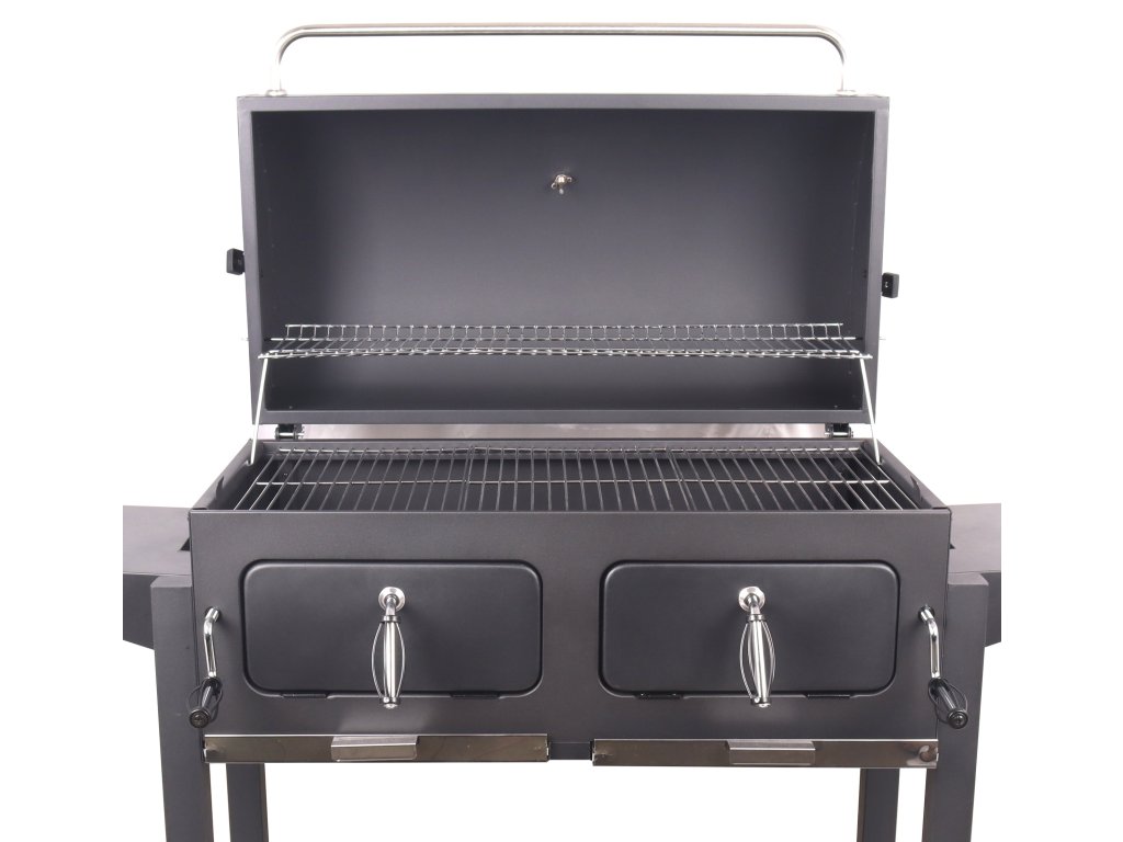 Ovládací kovové prvky a rukojeti mají dostatečné rozměry pro pohodlný úchop a zajišťují snadnou manipulaci. Oboustranná ocelová regulace ventilace perfektně lícuje s konstrukcí. Vyklápěcí víko je ve vrchní části doplněné teploměrem pro stálou kontrolu teplot uvnitř grilu.