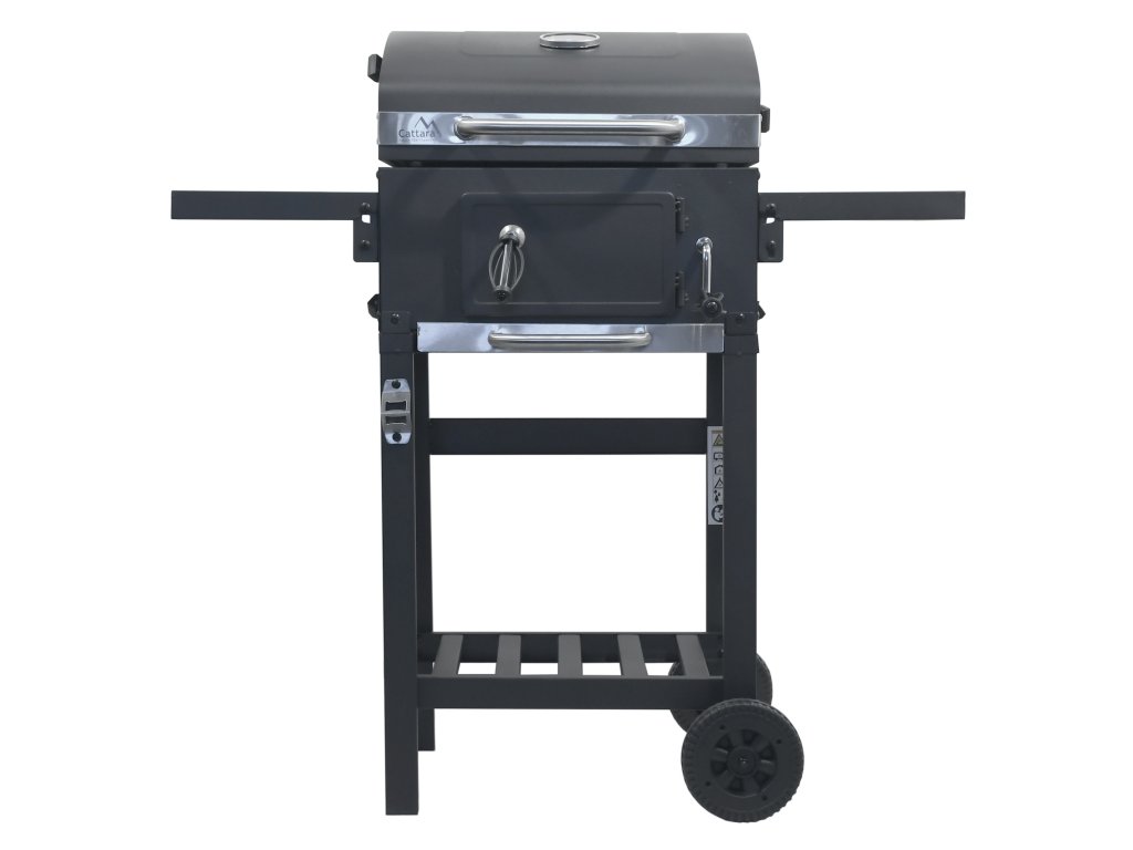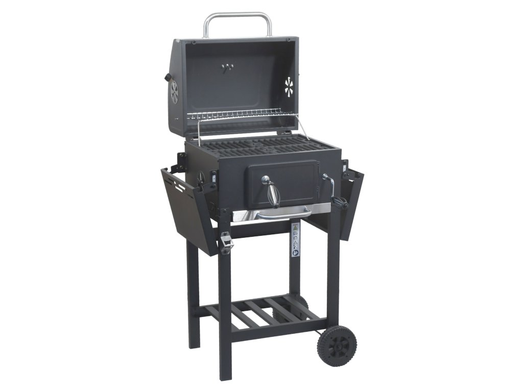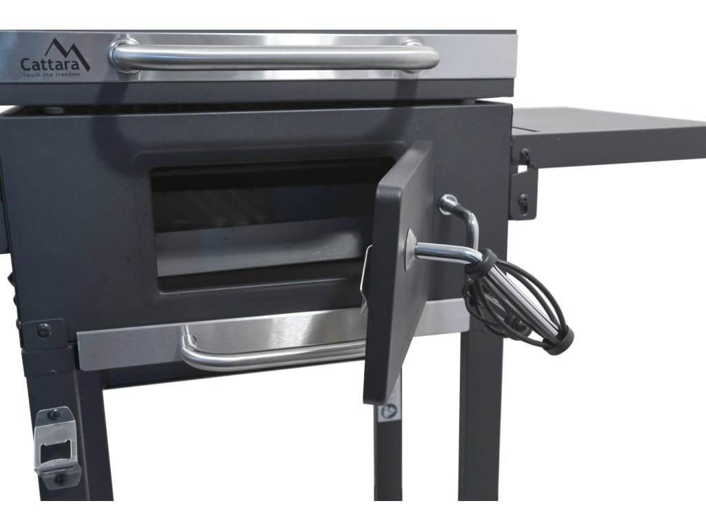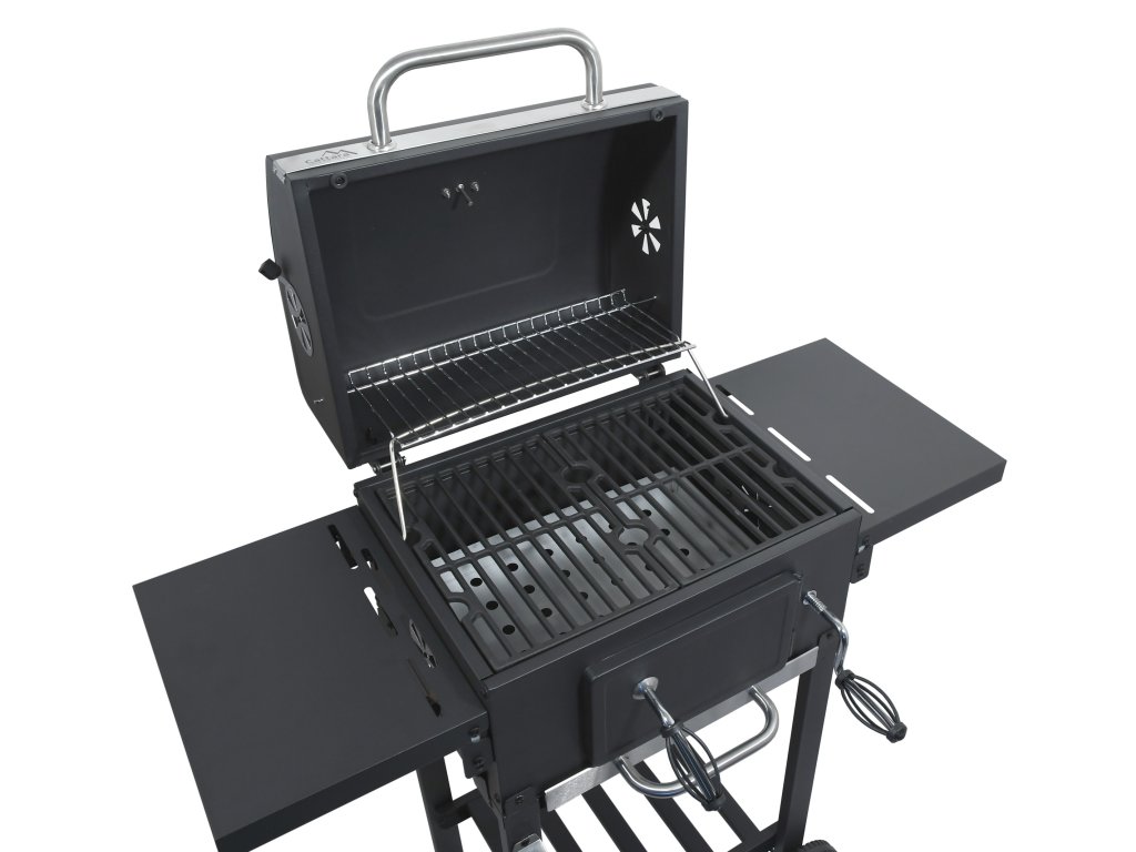 Ovládací kovové prvky a rukojeti mají dostatečné rozměry pro pohodlný úchop a zajišťují snadnou manipulaci. Oboustranná ocelová regulace ventilace perfektně lícuje s konstrukcí. Vyklápěcí víko je ve vrchní části opatřené teploměrem pro stálou kontrolu teplot uvnitř grilu.