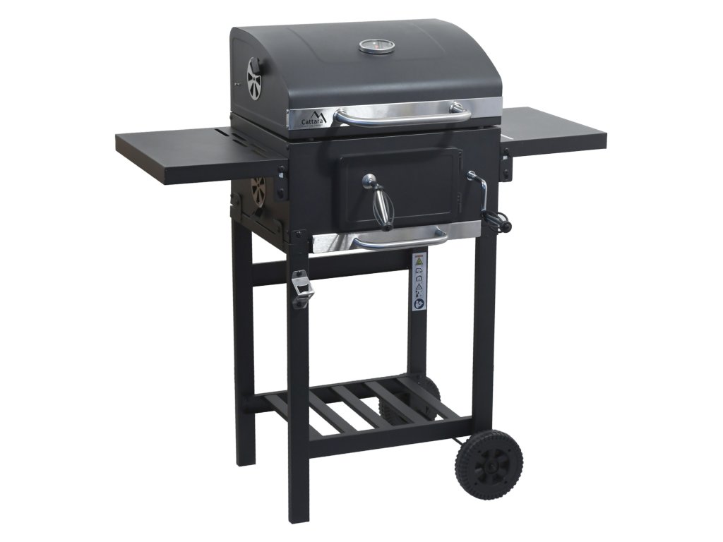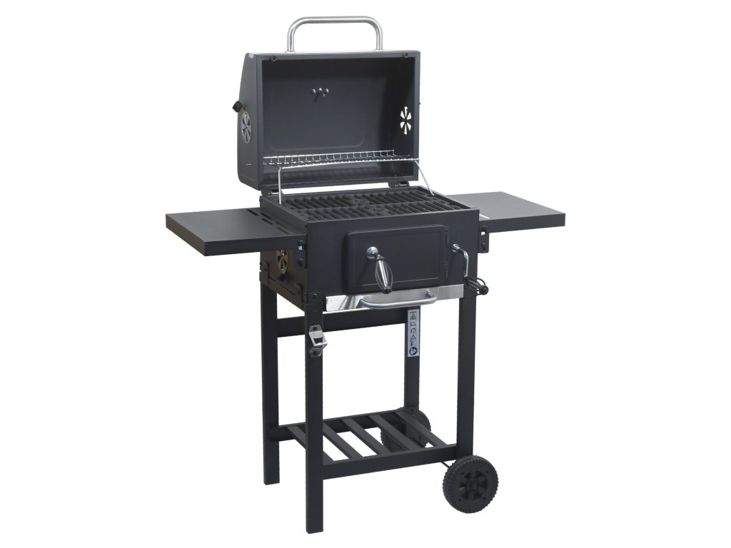 Další předností grilu je rošt na uhlí s nastavitelnou výškou, grilovací prostor je tak možné regulovat pomocí mechanismu na přední straně, dle požadávků daných pokrmů. Dvířka na čelní straně grilu významně usnadňují doplňování uhlí. Pro usnadněné číštění je potom určena zásuvka na popel ve spodní části grilu.