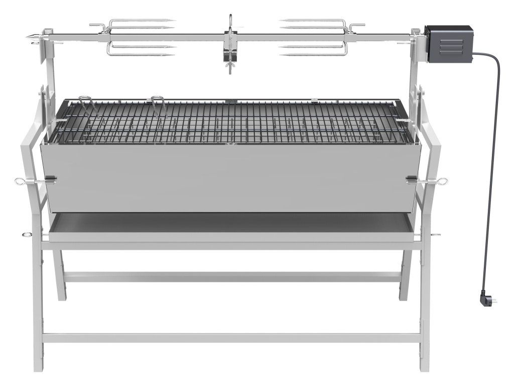 Gril je doplněn výkonným motorem s napájením na 230V pro otáčení pokrmů při rychlosti 3ot./min. Na vidlice - motor je možné naložit až 30 kg pokrmů.