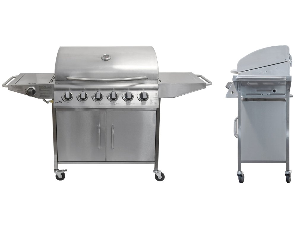 Plynový zahradní gril se systémem Flame Tamer. Hlavní grilovací prostor je osazen 6x hořáky se samostatnou regulací a piezo zapalováním. Díky možnosti vypnout prostřední hořáky je gril vhodný jak pro přímé, tak pro nepřímé grilování a je vybaven odkládacím roštem pro udržování teplot již hotových pokrmů.