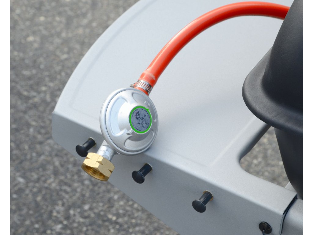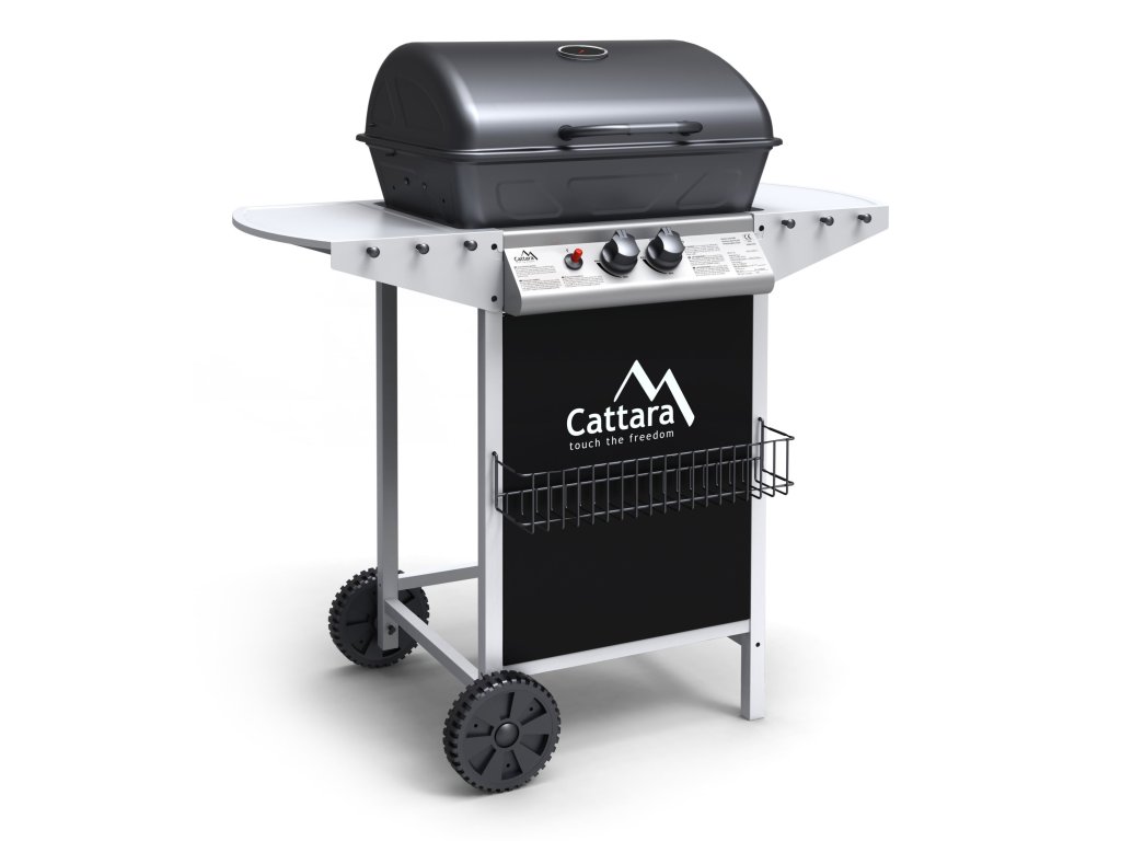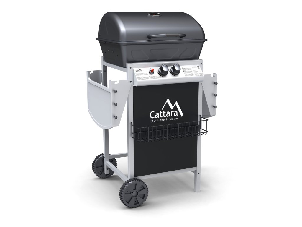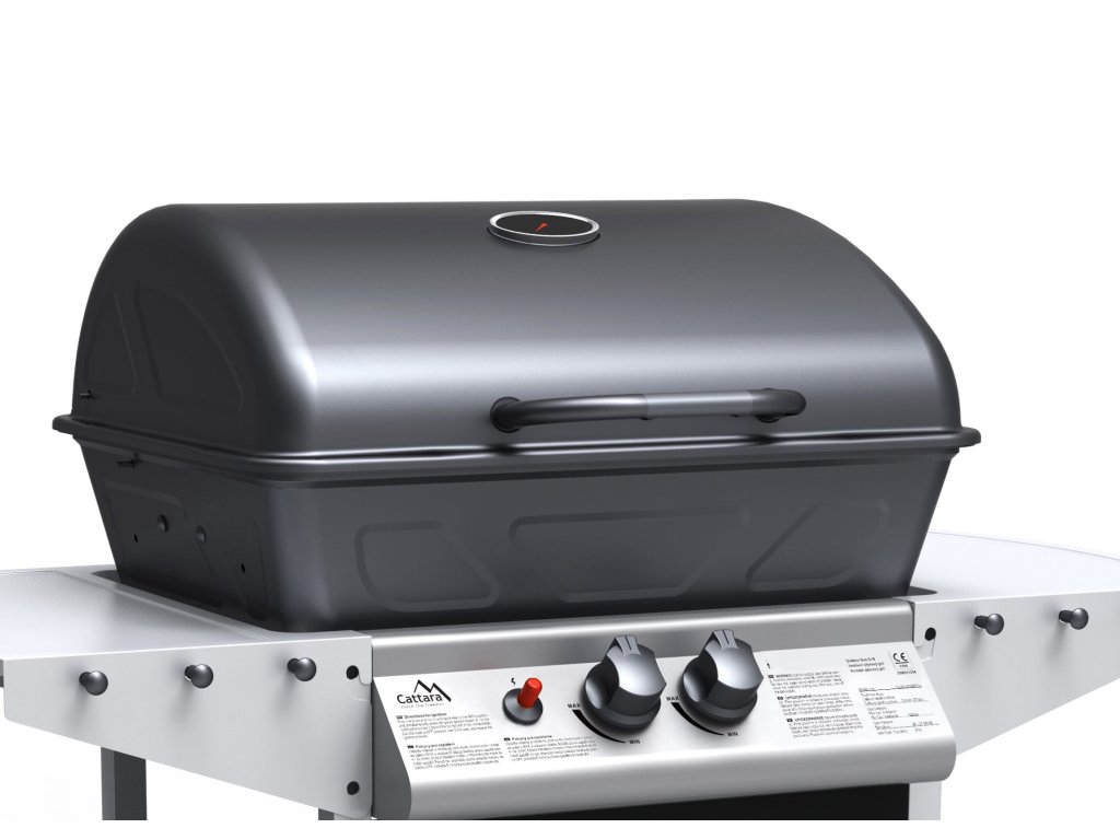 Gril je pojízdný (2 kolečka), je vybaven sklopným víkem a odkládacími poličkami na obou stranách. Součástí je i spojovací hadice k plynové lahvi a redukční ventil. Díky sklopným bočním poličkám se gril snadno skladuje.