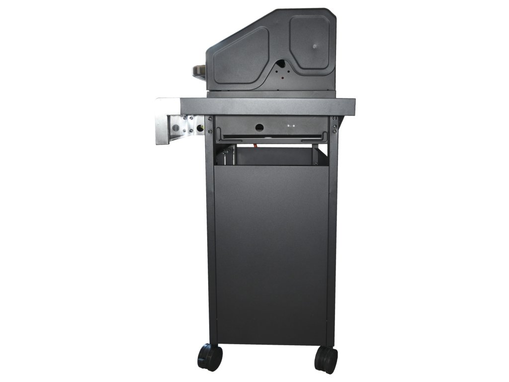 Manipulace s grilem je usnadněná díky 4 kolečkům. Jednotlivé prvky z leštěné oceli jsou pohodlné na úchop. Spodní část grilu je doplněna o praktickou skříňku s rozměry 53 x 68 cm opatřenou dvířky.