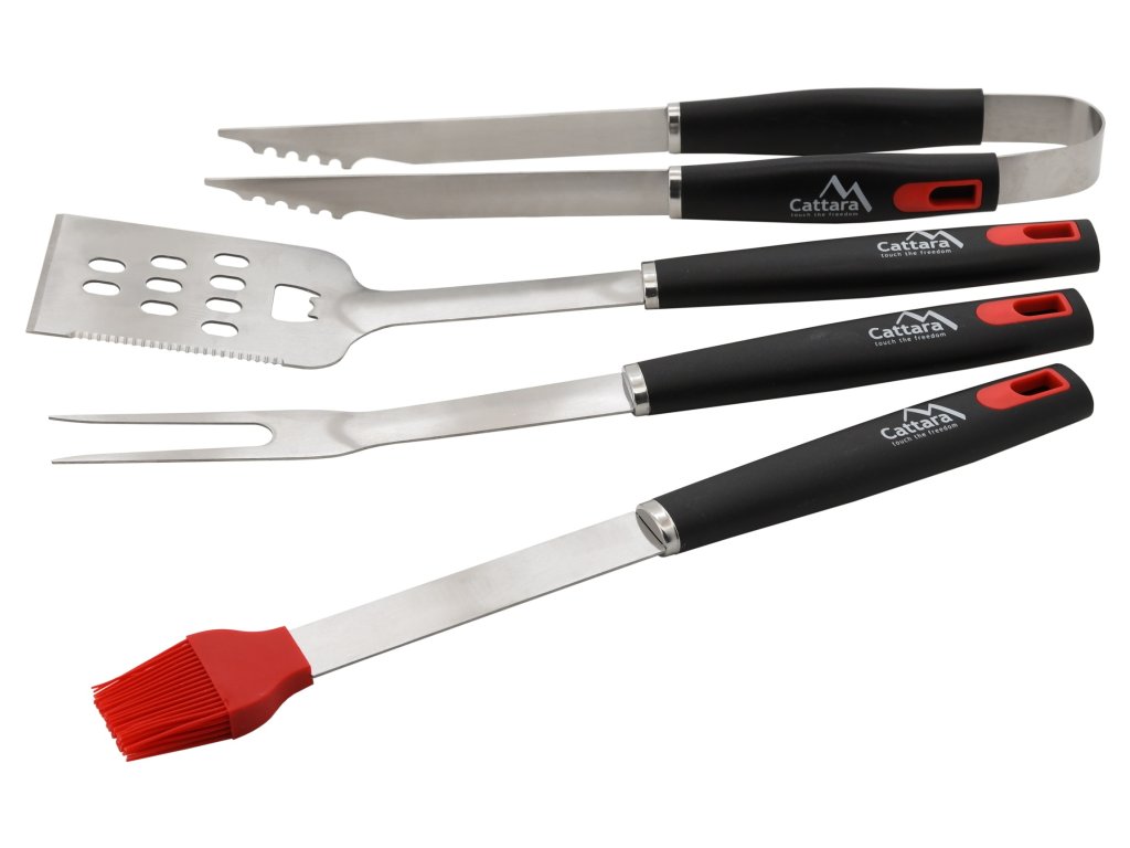 Sada nářadí prémiové kvality INFERNO, skládající se z obracečky, vidličky, kleští a mašlovačky.