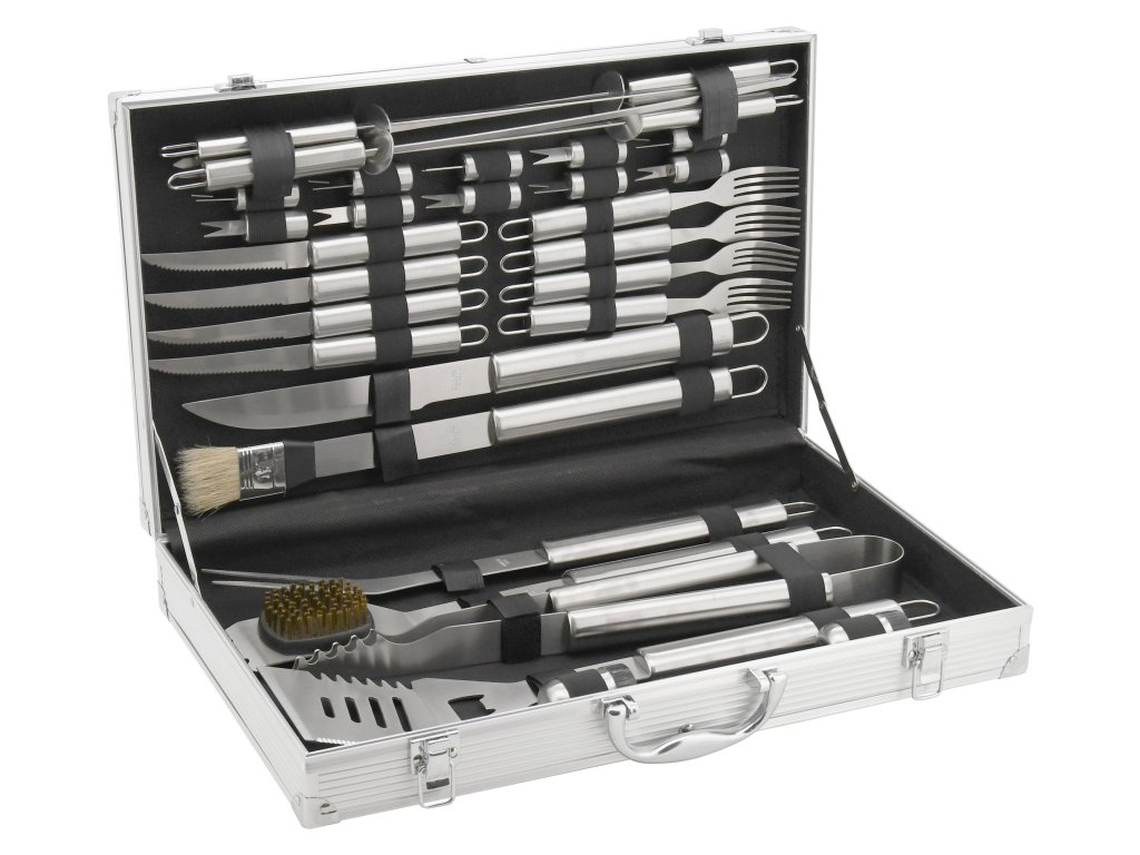 Sada obsahuje veškeré nástroje pro přípravu a konzumaci nejrůznějších pokrmů, ale i následnou údržbu grilu. Veškeré nástroje jsou navíc kvalitně zpracovány z nerezové oceli.