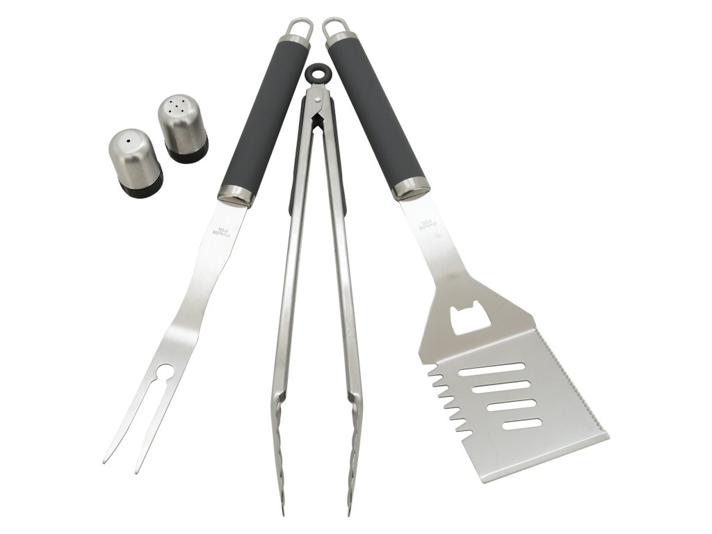Kleště jsou opatřeny zoubkováním pro jisté uchycení mastných pokrmů a mají délku 40 cm. Dvouzubá vidlička s délkou 44 cm. Obracečka délky 43,5 cm s precizně zabroušenou hranou, zoubkováním a odtokovými otvory pro otáčení masitých ale i jiných pokrmů.