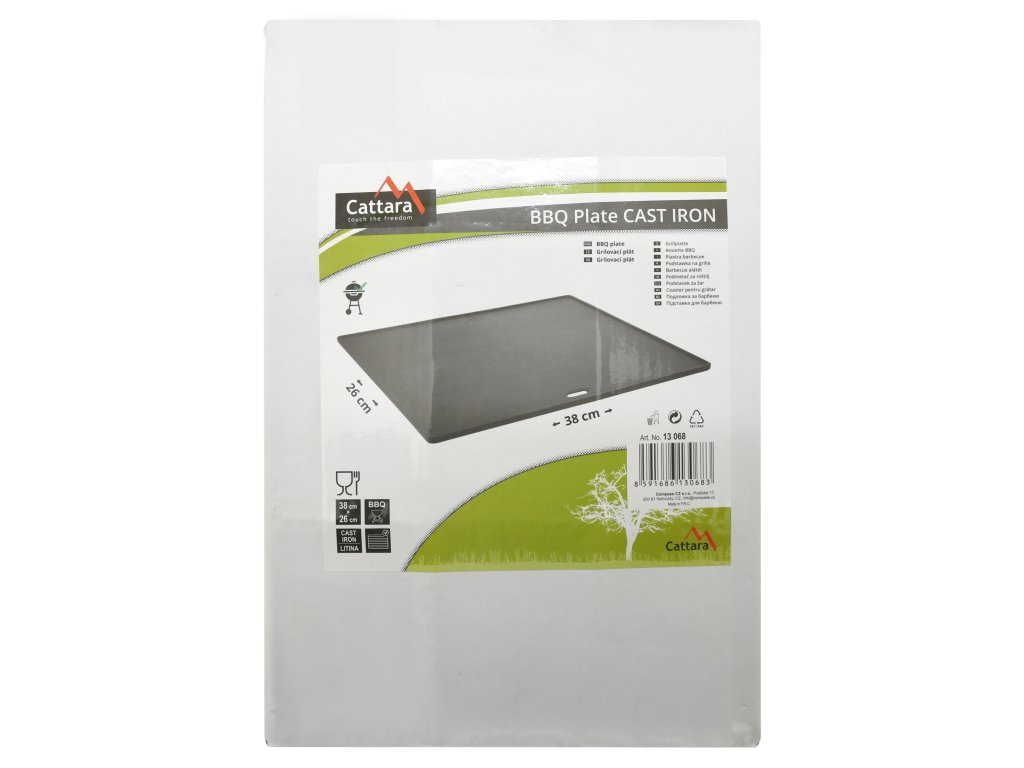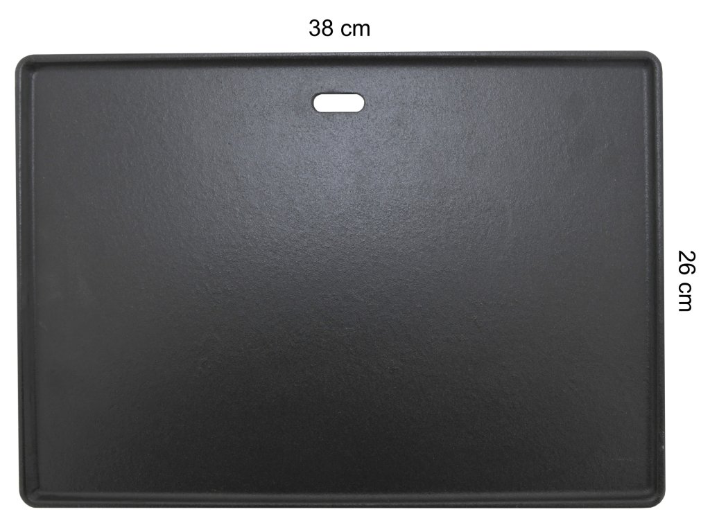 Grilovací plát z litiny s rozměry 38 x 26 cm pro grilování převážné masitých pokrmů.