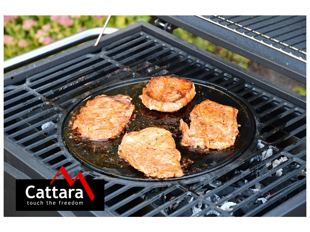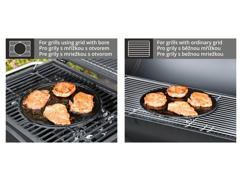 Grilovací plát z litiny průměru 31 cm pro grilování převážné masitých pokrmů.
