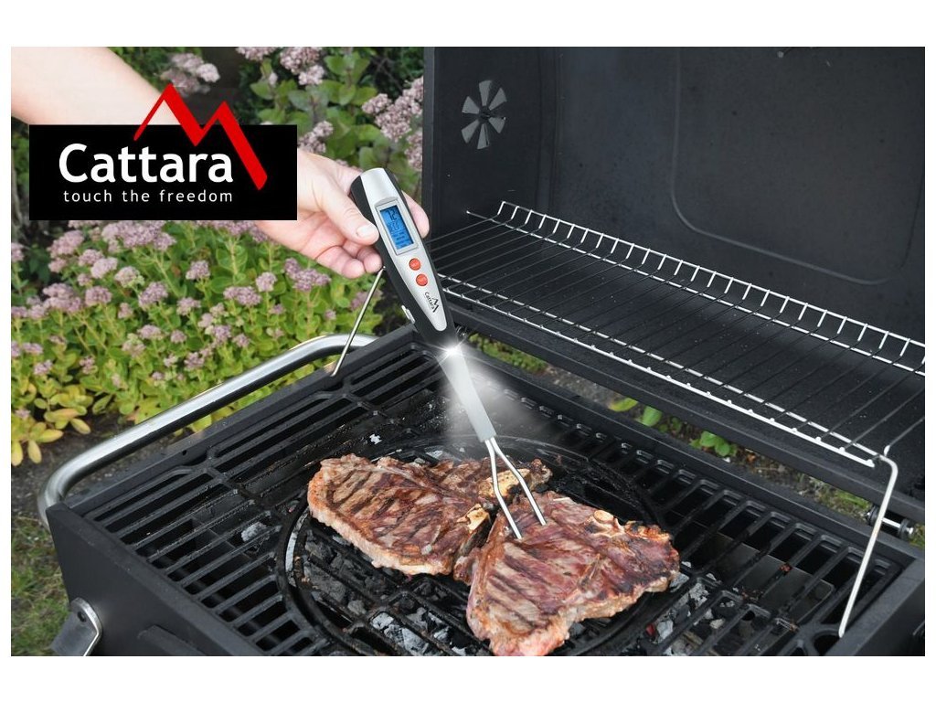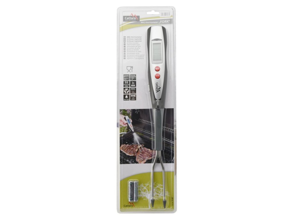 Praktický pomocník pro grilování opatřený digitálním teploměrem. U přístroje lze nastavit druh masa (hovězí, telecí, jehněčí, vepřové, kuře a krocan) a požadovaný stupeň propečení. Po dosažení nastavených teplot začne přístroj signalizovat zvukovým tónem.