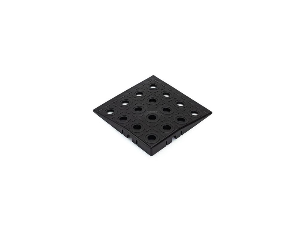 Toto zboží je na objednávku, doba expedice cca 7dníNájezd rohový 137x137x16mm je doplňujícím prvkem pro ukončení podlahové podlahy v rozích, kde na sebe navazují rovné nájezdy ze dvou stran. Plynulý nájezd zabezpečí bezpečný vstup a nájezd na plochu.Povrch rohu je stejně děrovaný jako základní deska, spodní strana je žebrovaná a propojená kanály, které zajišťují rychlý a trvalý odvod vody pod povrchem podlahy. Barevnou kombinací nájezdů a rohů jemožné označit okraje plochy v souladu s bezpečnostními předpisy (kombinace žluté a černé). Součástí dodávky jsou 2ks spojek pro spojení s dalšími prvky.Typy provedení