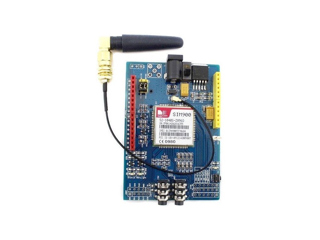 Shield založený na čipu SIM900. Modul podporuje SMS, MMS, GPRS a zvuk. Komunikace přes UART zasláním AT příkazu.**Specifikace:**