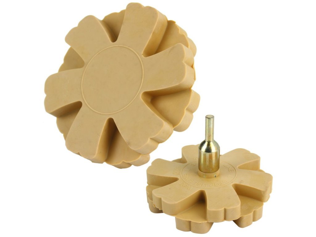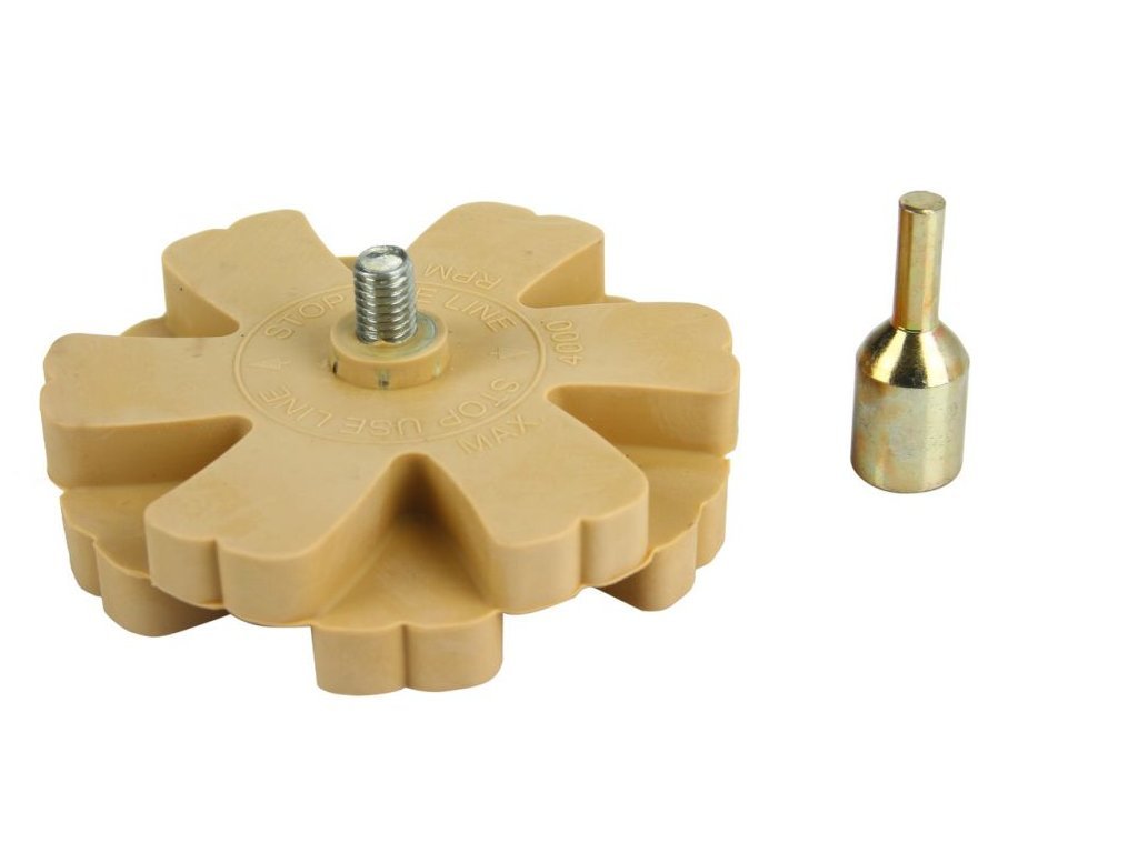 Gumový kotouč namontovaný na vrtačce / brusce umožní rychlé odstranění zbytků lepidla z povrchu. S takovým kotoučem již nemusíte používat rozpouštědla ani jiné chemikálie k odstranění zbytků lepidla.