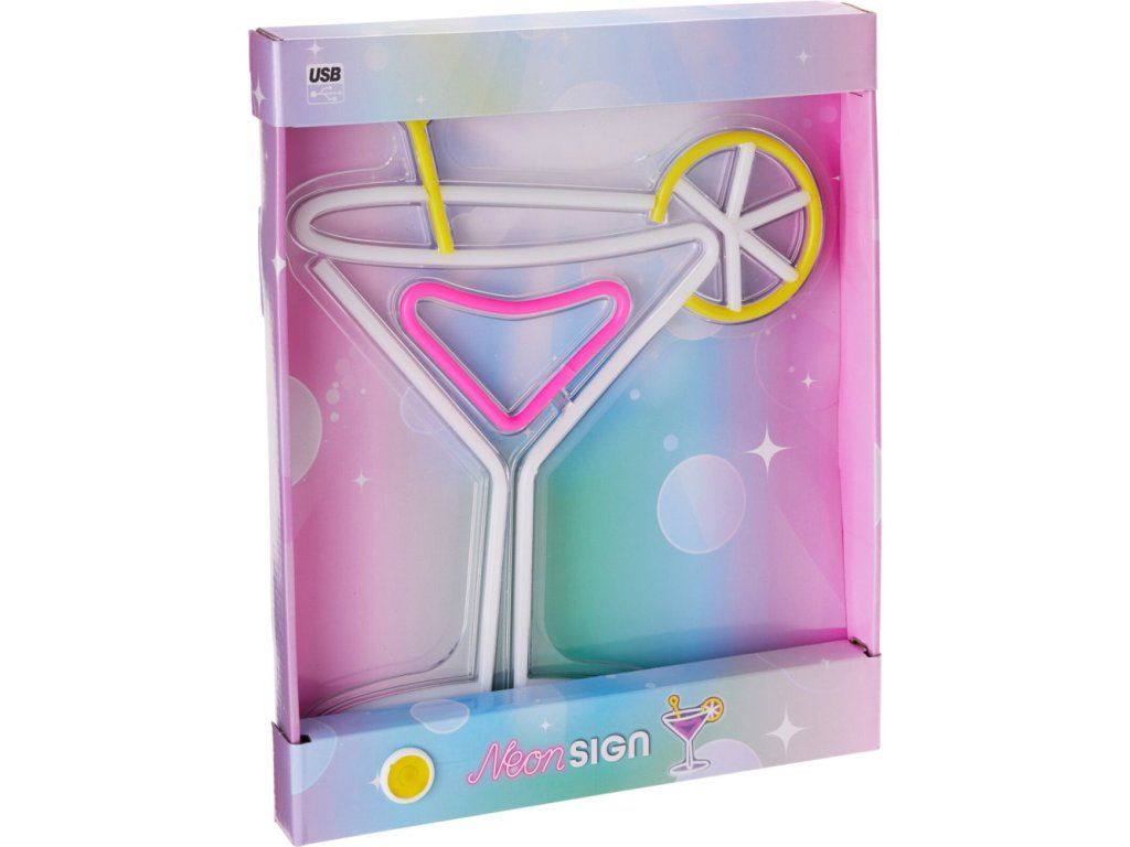 Stylová nástěnná neonová dekorace s motivem koktejlu vnese do vašeho interiéru hravou atmosféru a moderní světelný efekt. Díky vícebarevnému LED osvětlení v odstínech bílé, žluté a růžové se skvěle hodí do obývacího pokoje, baru, kuchyně nebo na tematické party.