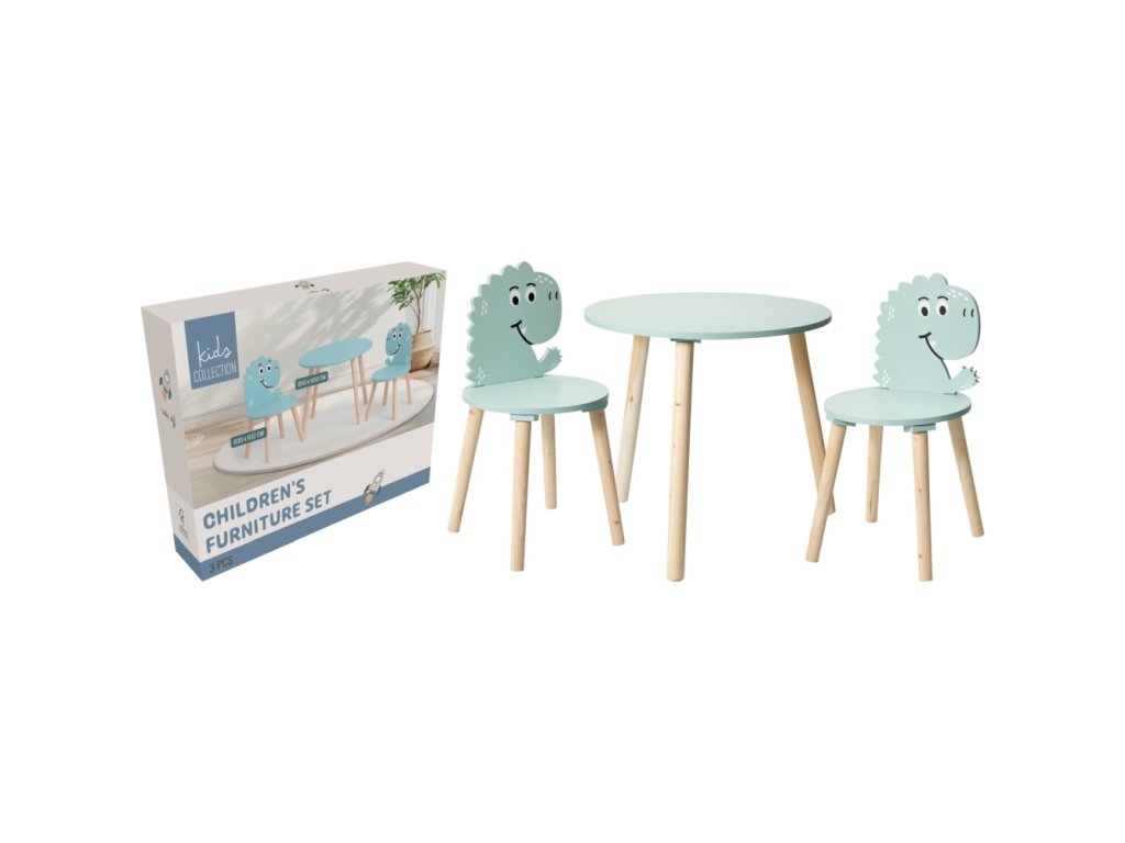 Kombinuje funkčnost s hravou estetikou. Tato sada je vyrobena z kvalitního MDF a borového dřeva, což zaručuje dlouhou životnost a stabilitu. Modrý design s unikátním dinosaurovým tvarem zadní opěrky přináší do prostoru kreativitu a radost. Dětská sada stolu a židle je nejen praktická, ale také zábavná, což podporuje dětskou představivost a kreativní hru.