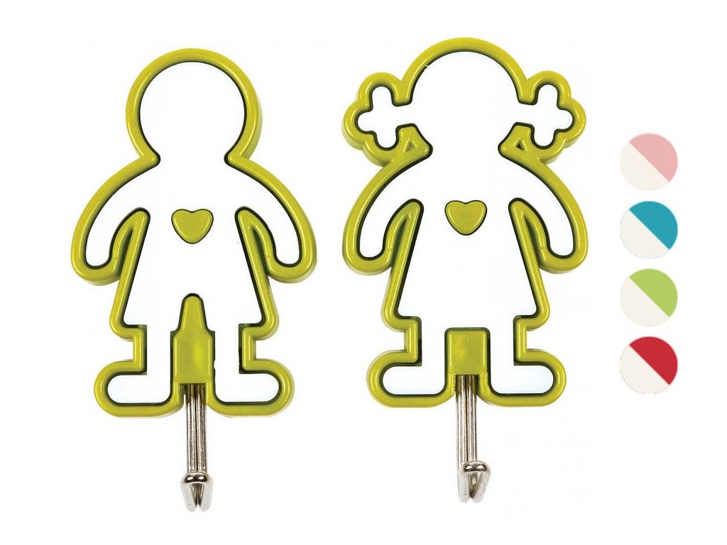 Sada plastových samolepicích háčků s kovovým závěsem.Vhodné do domácnosti, školky apod. kde chcete jednoduše rozlišit, který ručník je pro holku a který pro kluka.