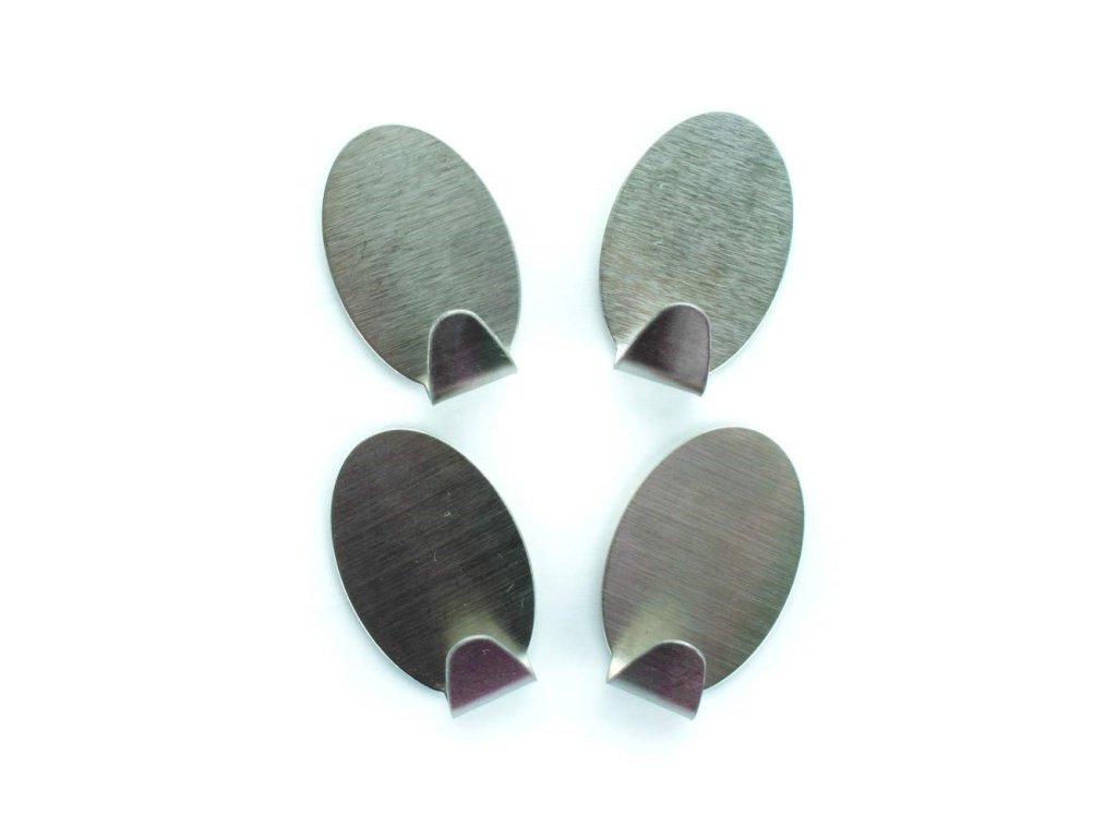 Samolepicí nerez háčky 4 ks o výšce 5 cm jsou vhodné pro zavěšení utěrek, ručníků apod.Výhodou háčků je velmi rychlá instalace.