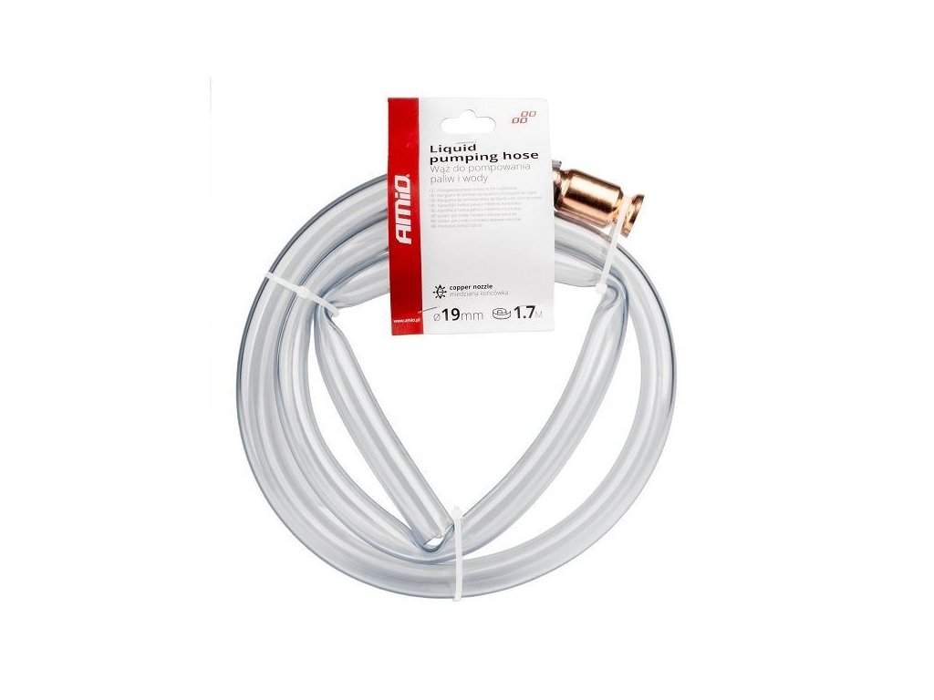 Hadice na čerpání paliva a vody AMIO Vypouštěcí hadice paliva s měděným čerpadlem je spolehlivý nástroj, který vám umožní rychle a efektivně vypustit palivo z různých vozidel, strojů nebo nádrží. Díky kvalitní 1,7 m dlouhé hadici o průměru 19 mm a měděnému čerpadlu zajišťuje přístroj spolehlivý provoz ve ztížených podmínkách. Hadice je ideální pro použití v dílnách, garážích a pro různé druhy oprav a údržby, kde je vyžadováno bezpečné a rychlé odstranění paliva.Klíčové vlastnosti produktu