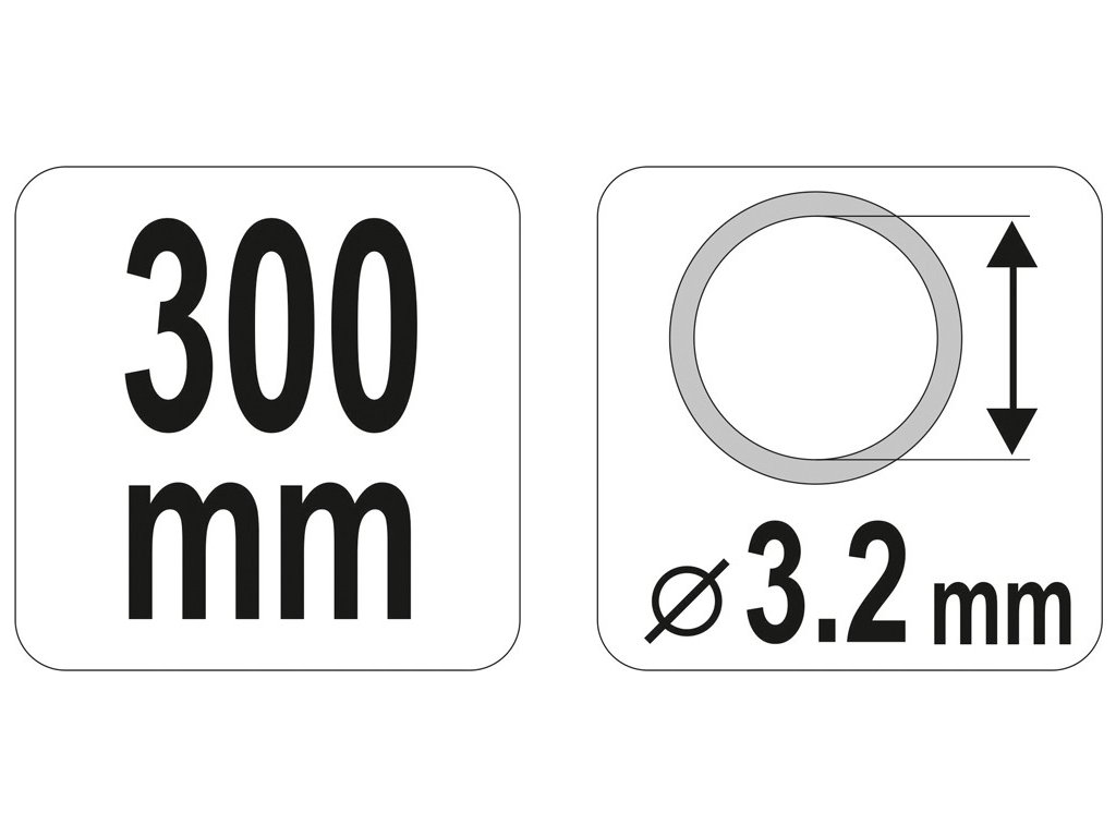 Délka hadice 300 mm, průměru 3,2 mm, zhotovena z nylonu a pryskyřice.