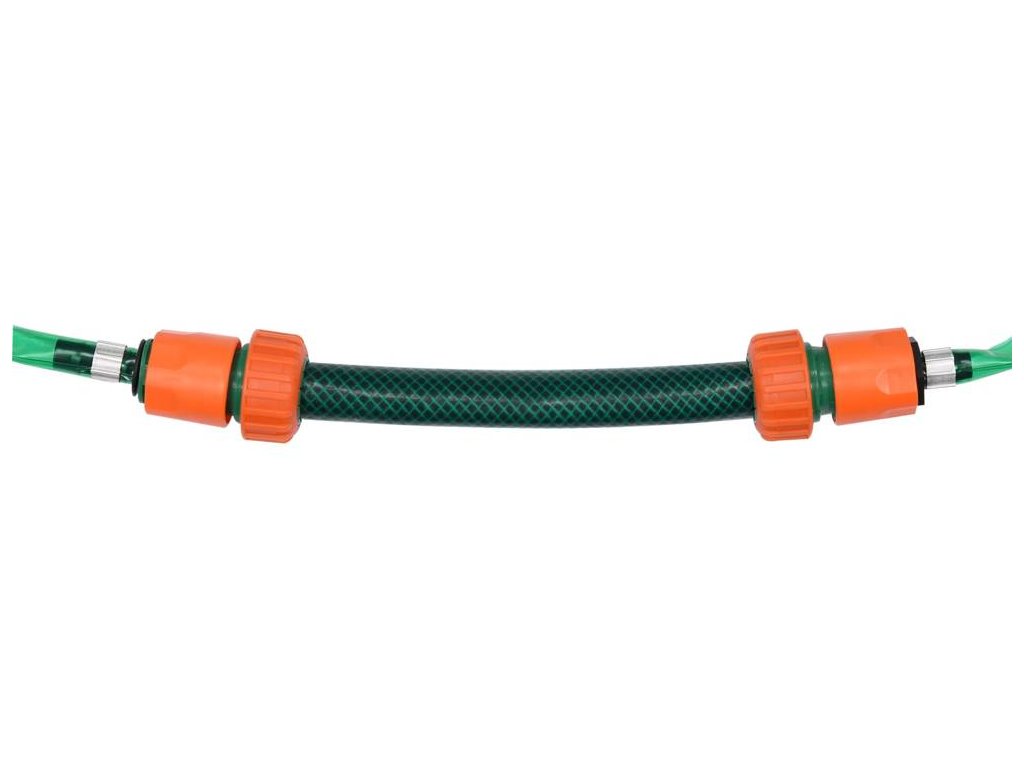 Hadice vybavená 2 konci, oba pro připojení rychlospojkou. Jeden konec s maticí. Šroubovací uzávěr - uzavření systému, odšroubovaný - pokračování systému. Spojení mezi hadicí postřikovače a tradiční hadicí je možné pomocí univerzální rychlospojky. Její výběr závisí na průměru vaší zahradní hadice (1/2", 3/4" nebo 1"). Doporučuje se použít plastové rychlospojky (mosaz nemusí pasovat).