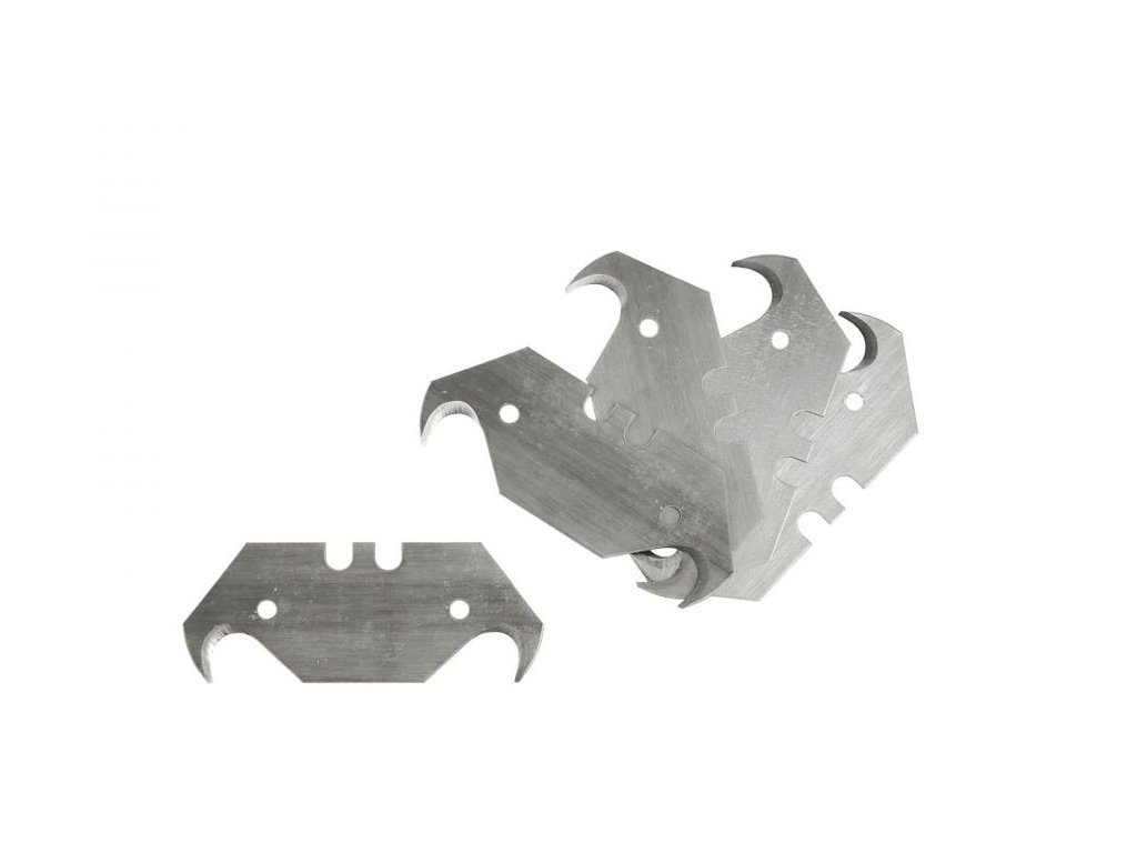 Sada 5 ks hákových trapézových čepelí vyrobených z vysoce kvalitní nástrojové oceli. Určeno pro řezání papíru, kartonu, plastů, látek, kůže a pro řezání podlahových krytin.